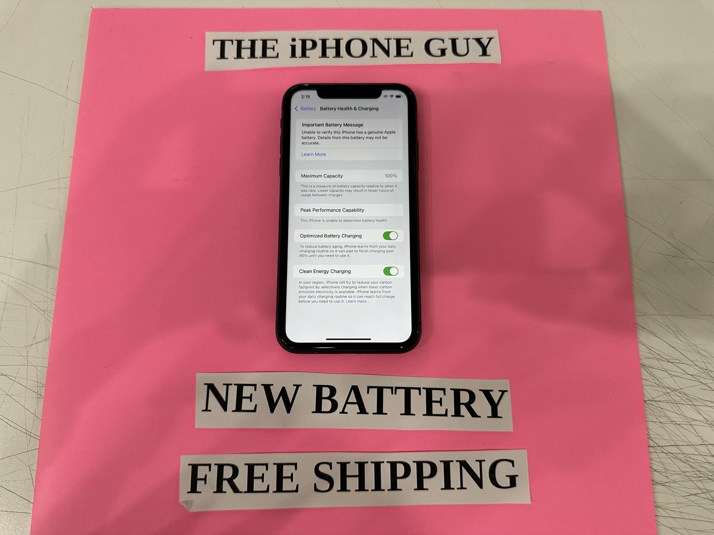 For iPhone X and 11 series devices, you may see a “Non-Genuine Battery” or “Non-Genuine Screen” message. This does not affect performance, safety, or functionality in any way. It only appears because Apple’s system detects a different serial number than the original component.