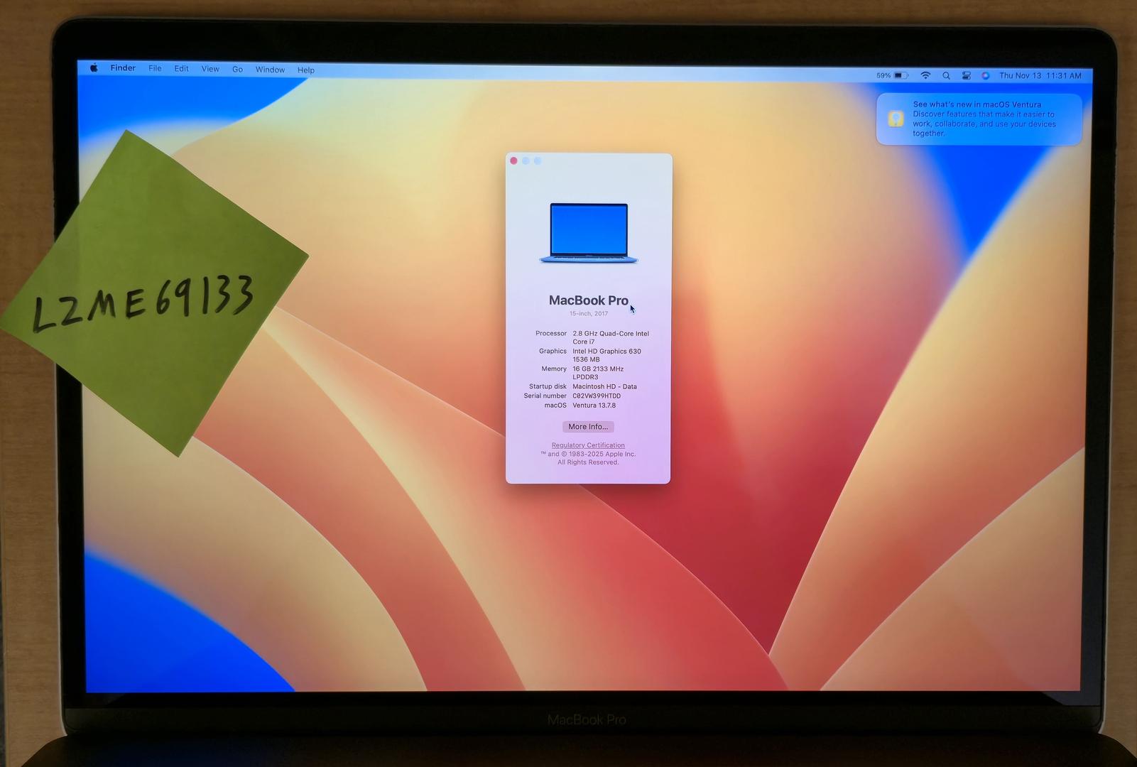 Operating System: Ventura 13.7.8