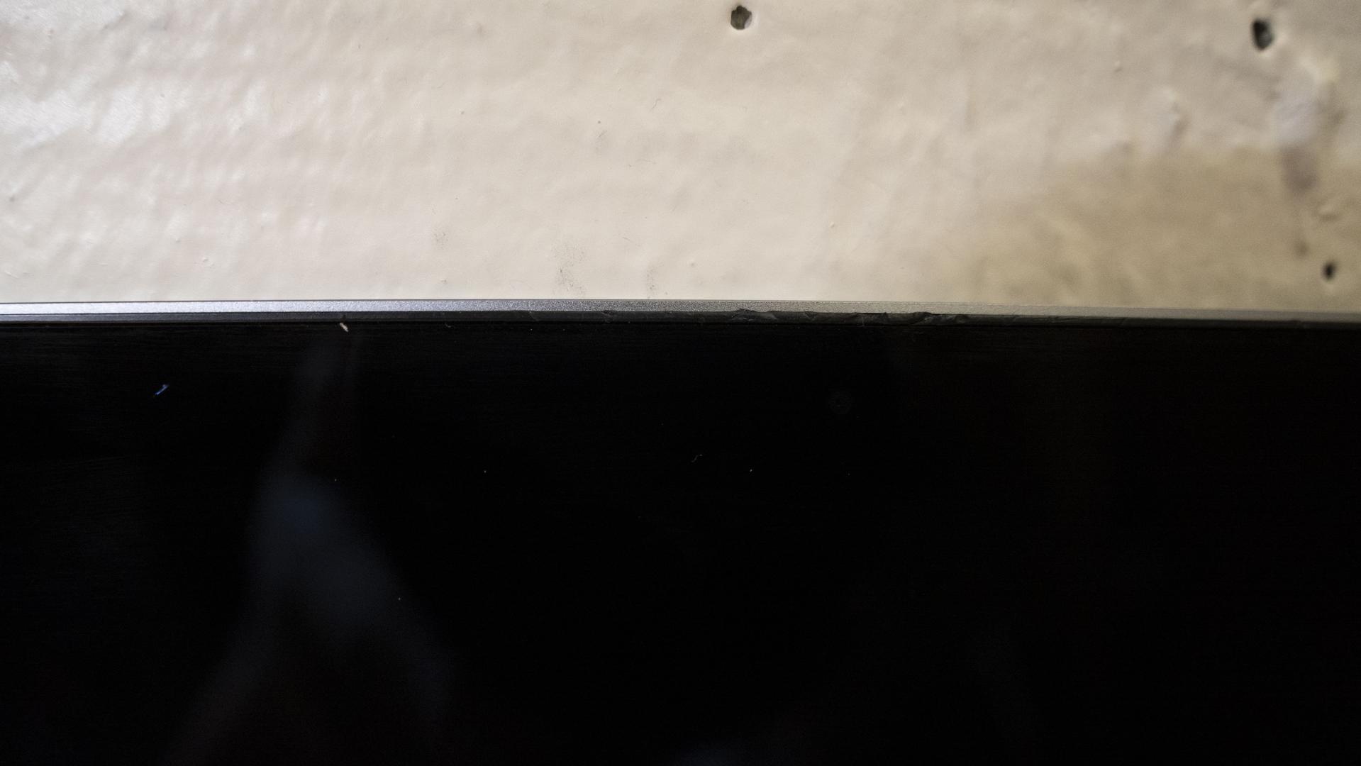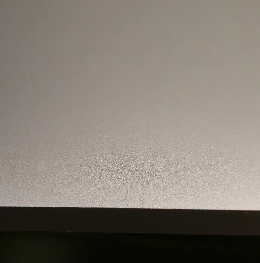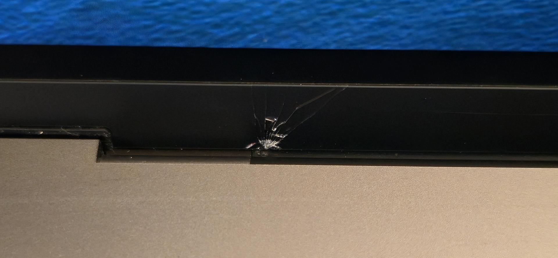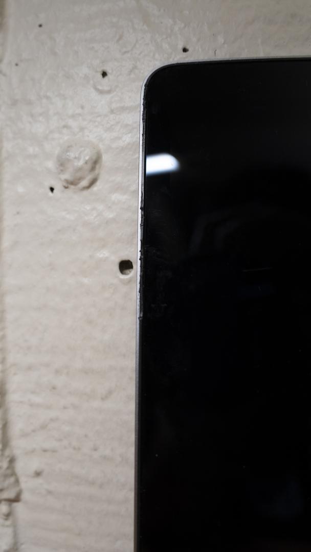 Rubber gasket trim has some damage but still closes tight. Couple dings and a crack on bottom left under screen.