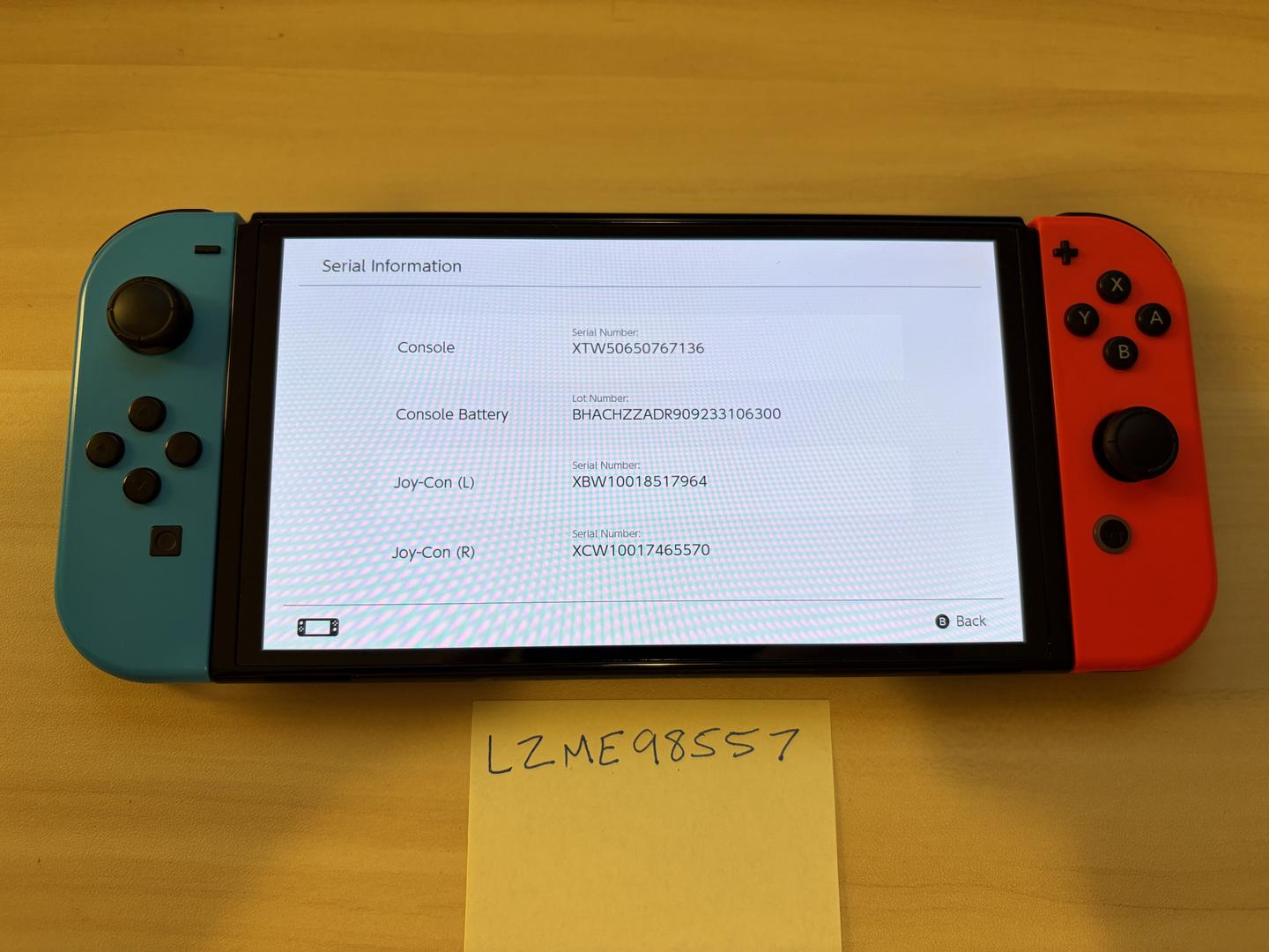 Switch itself is in good shape. Flawless screen. Used by original owner in an adult home. Nintendo accounts on the console were always in good standing with no bans or anything like that. No piracy devices were ever used on this console.