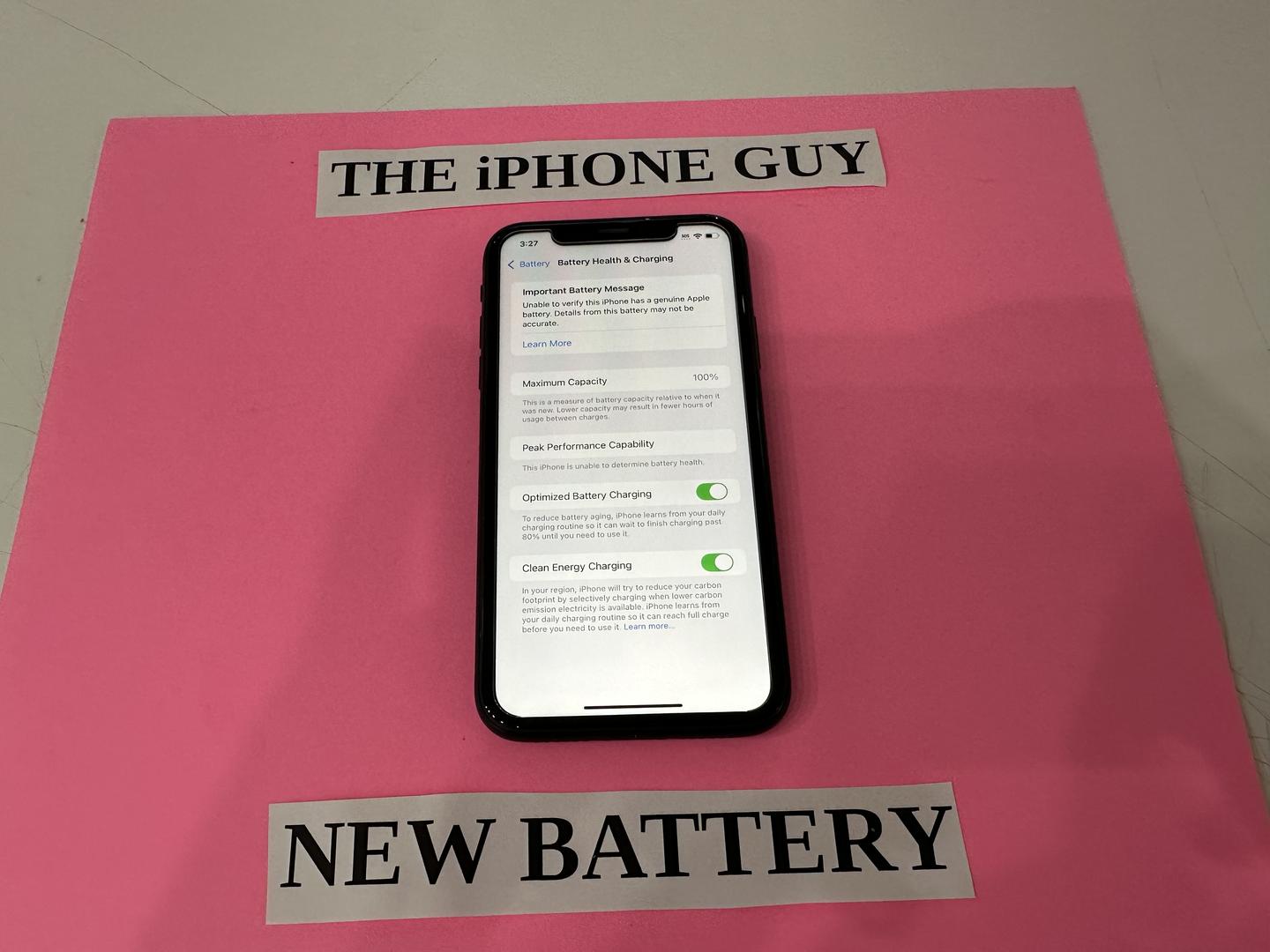 For iPhone X and 11 series devices, you may see a “Non-Genuine Battery” or “Non-Genuine Screen” message. This does not affect performance, safety, or functionality in any way. It only appears because Apple’s system detects a different serial number than the original component.