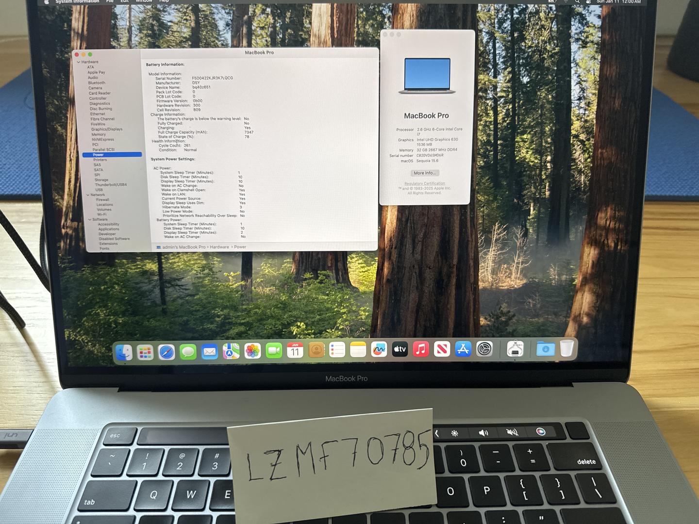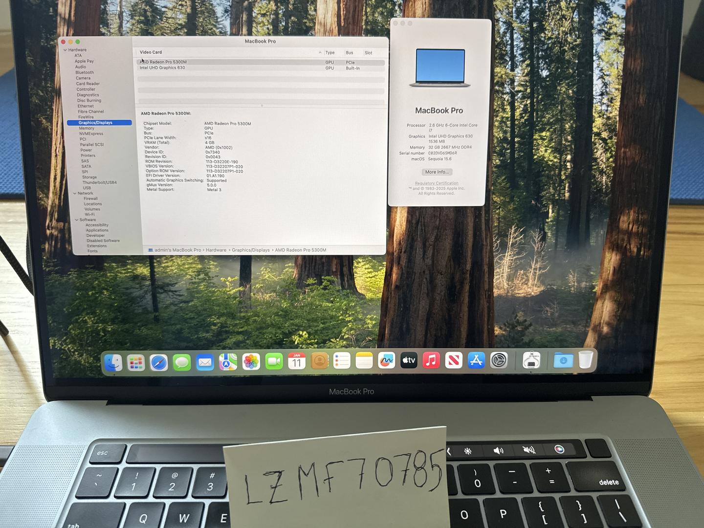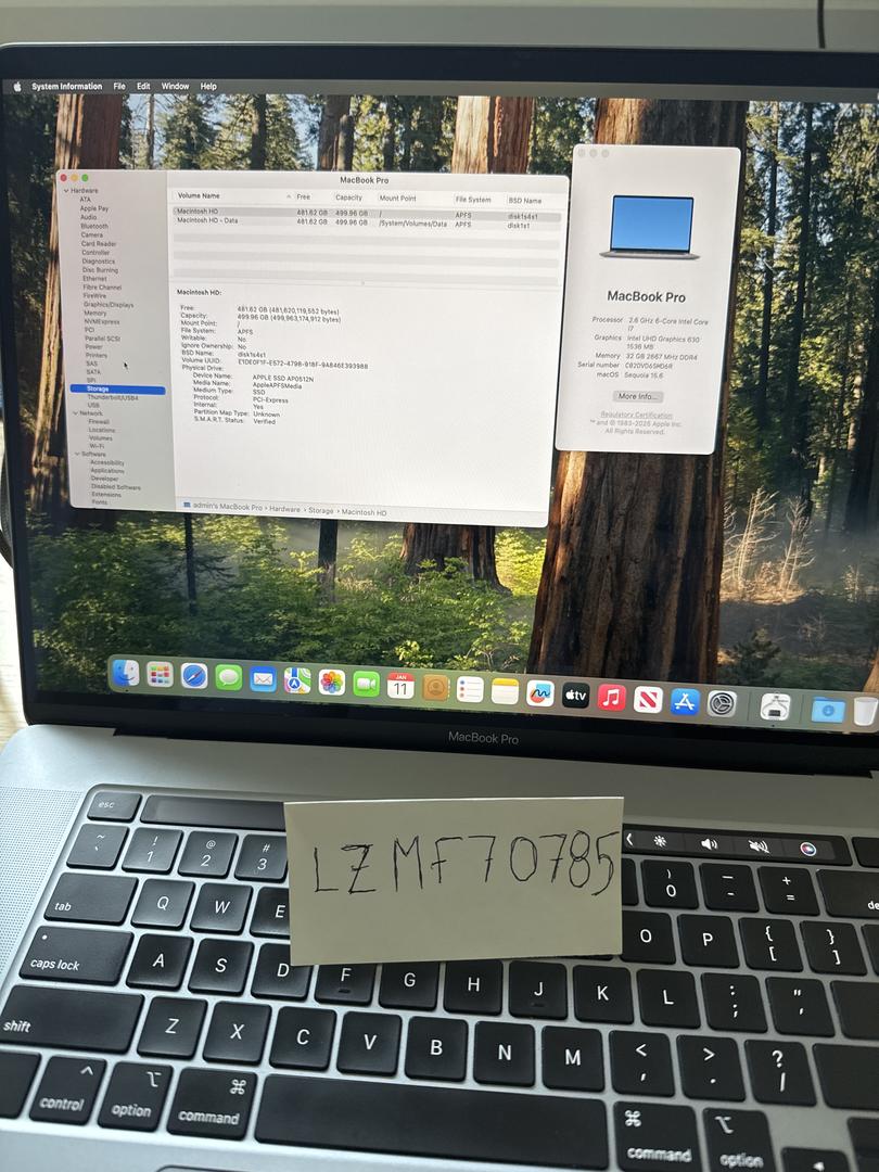 2019 16” MacBook Pro for sale. Has the i7 processor, AMD Radeon pro 5300m (4gb), 32gb ram, and a 512gb hard drive. Currently running sequoia 15.6. Battery is in normal condition and has 261 cycles. Very nice display with no light spots or dead pixels. Has minor wear around the edges and a few scratches here and there (see pictures for specifics).