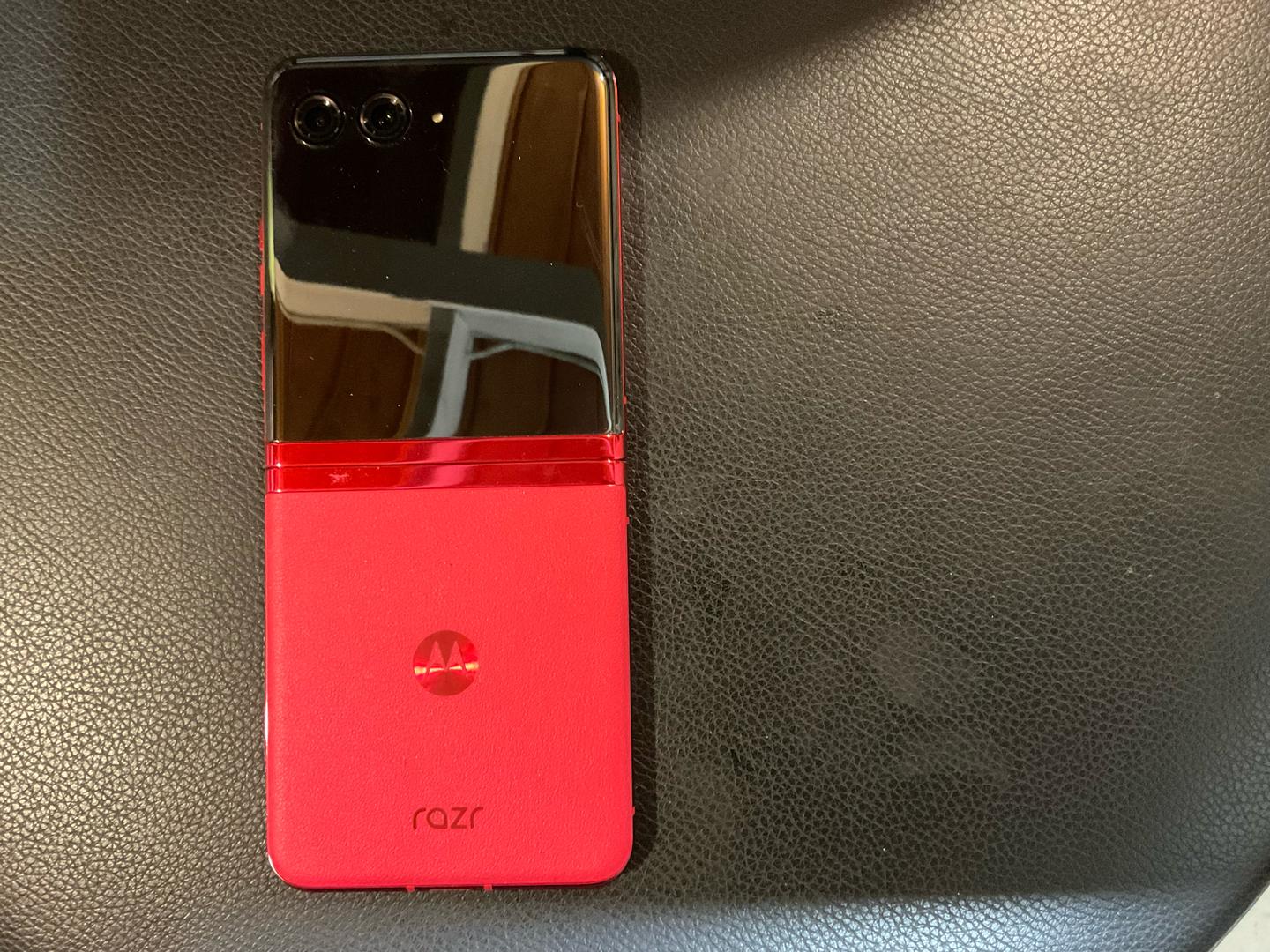 Used for a couple of years. The camera hub has scratches but not the lense it seems. One scratch in the outside screen. The inside has some minor scratching.