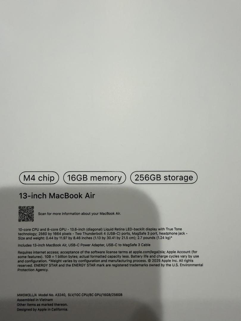 Brand New, AppleCare thru 10/7/26 -- MBA 2025/M4/16GB/256GB/Midnight