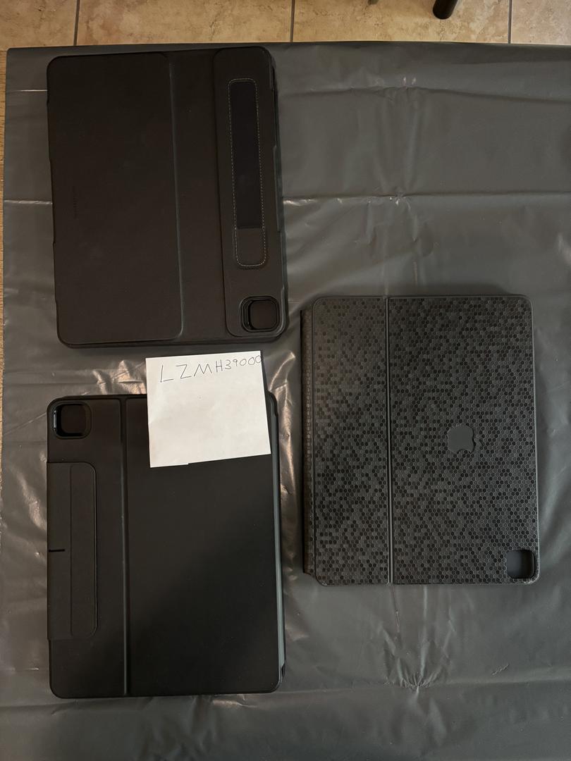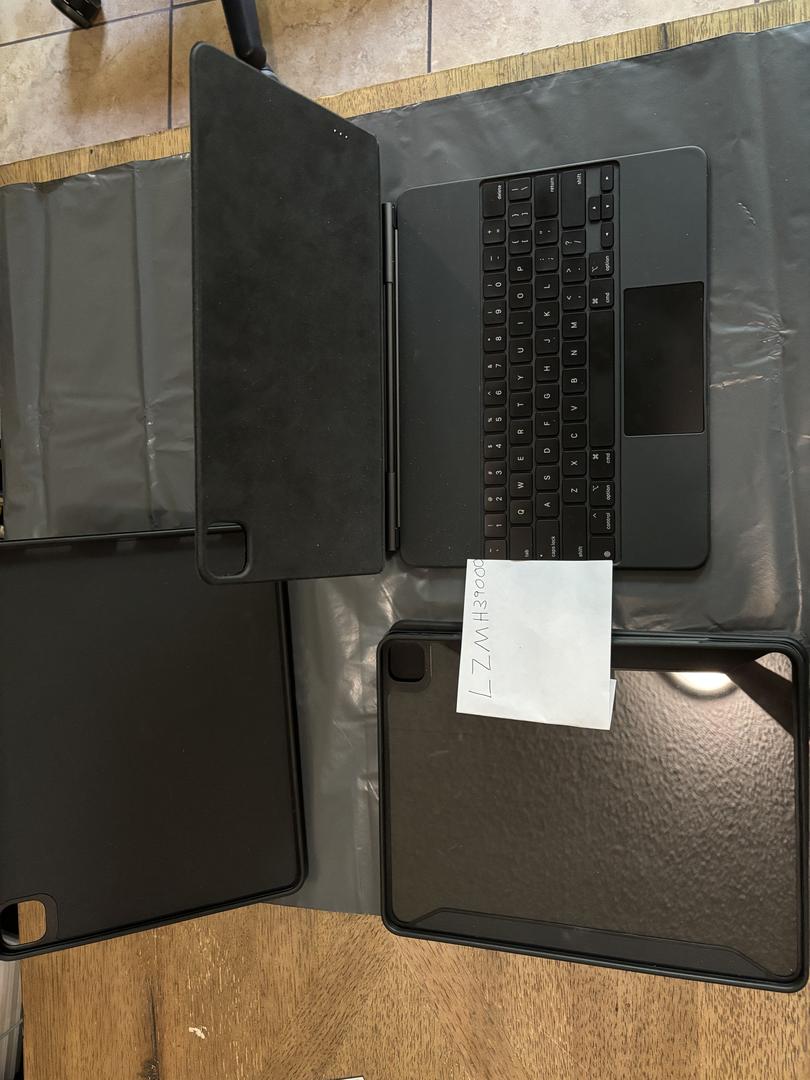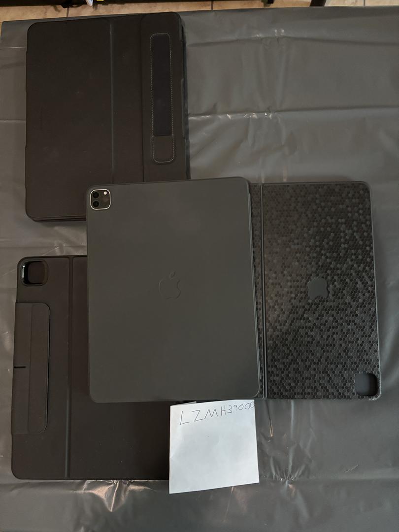 Included Items: iPad Pro 256gb, Apple Folio, iPad Magic Keyboard with I believe a Slickwraps black Honeycomb skin applied (could be Dbrand), ESR Shift Magnetic Case in Black, and Black ESR Rebound Hybrid 360 Case.