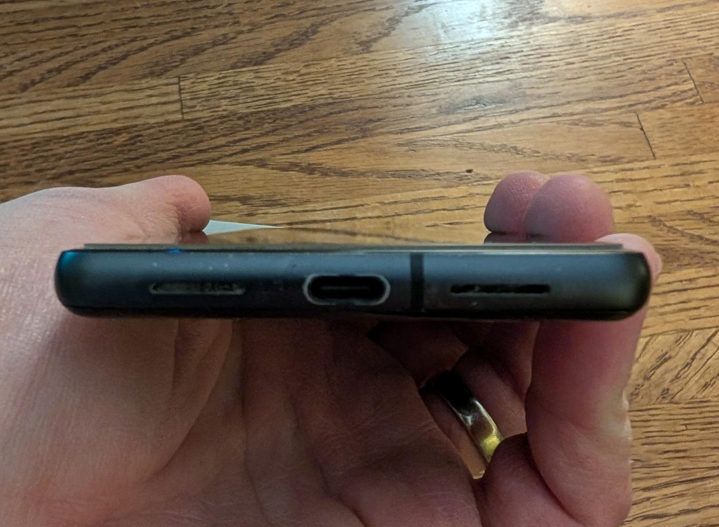 Small amount of superficial wear around charging port from plugging and unplugging.