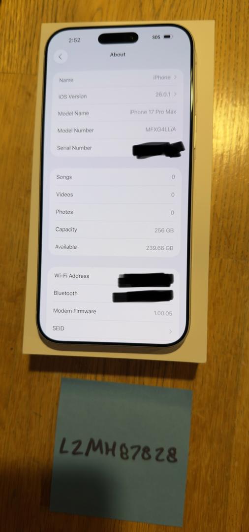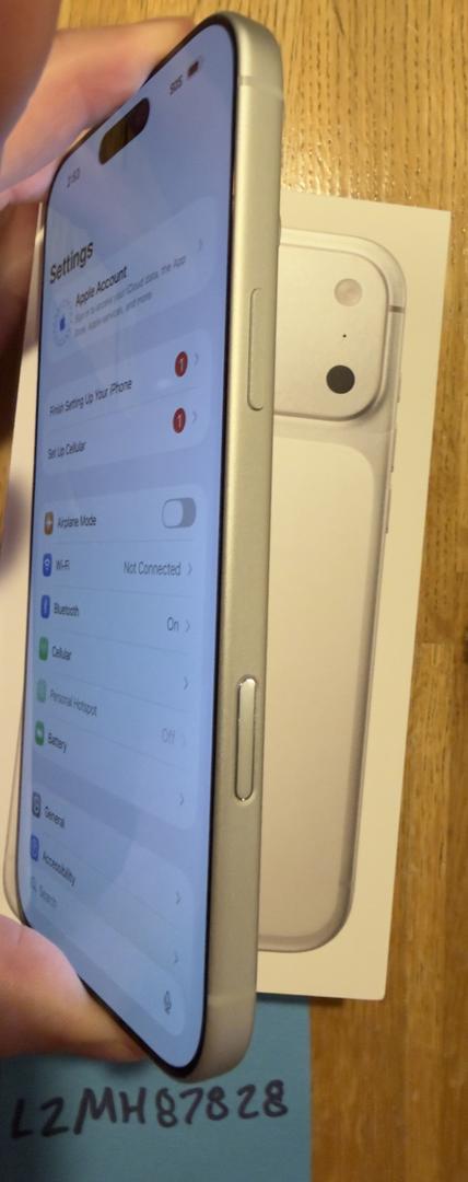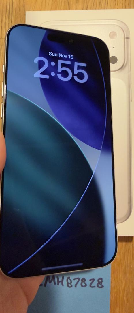 Nearly new iPhone 17 Pro Max for sale. Phone is in mint condition with no noticeable wear marks of any kind. Was used with case and screen protector for roughly two weeks. Only selling as the size is just too big for me and I went and bought a regular pro to stop my hand cramps. Comes with original packaging and charge cord.