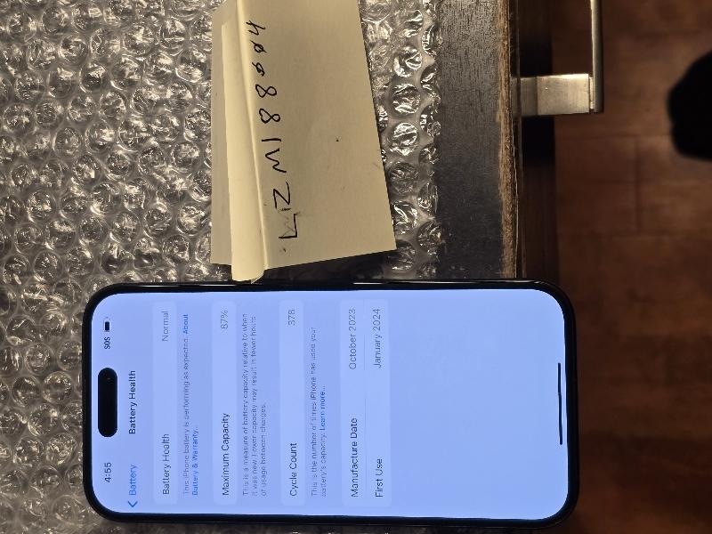 iPhone 15 128 GB Black in Near Mint Condition, Screen and back mint. Scratches and scuffs on sides. Damage is pictured and purely cosmetic. Battery health is 87%, unlocked for use with any carrier. IMEI is clean and ready for activation. Kept well in screen protector and case.