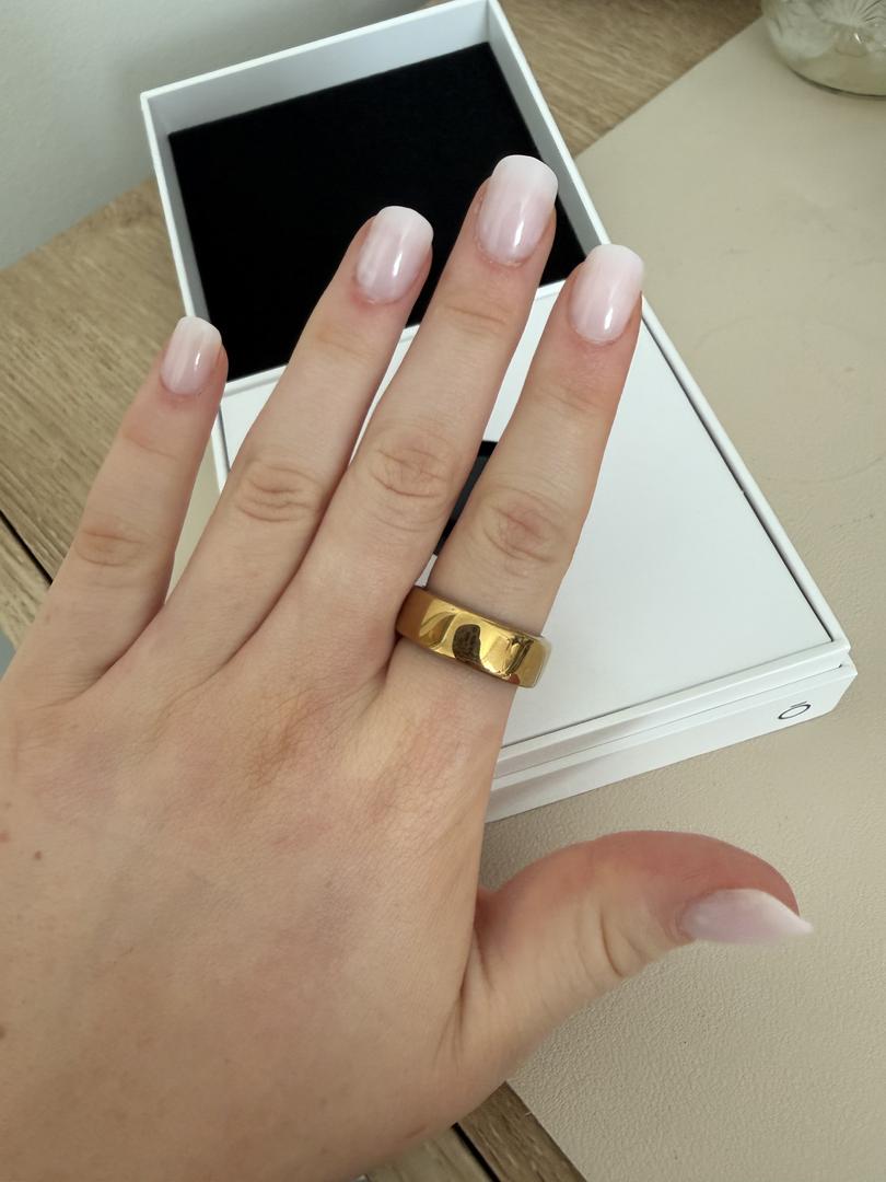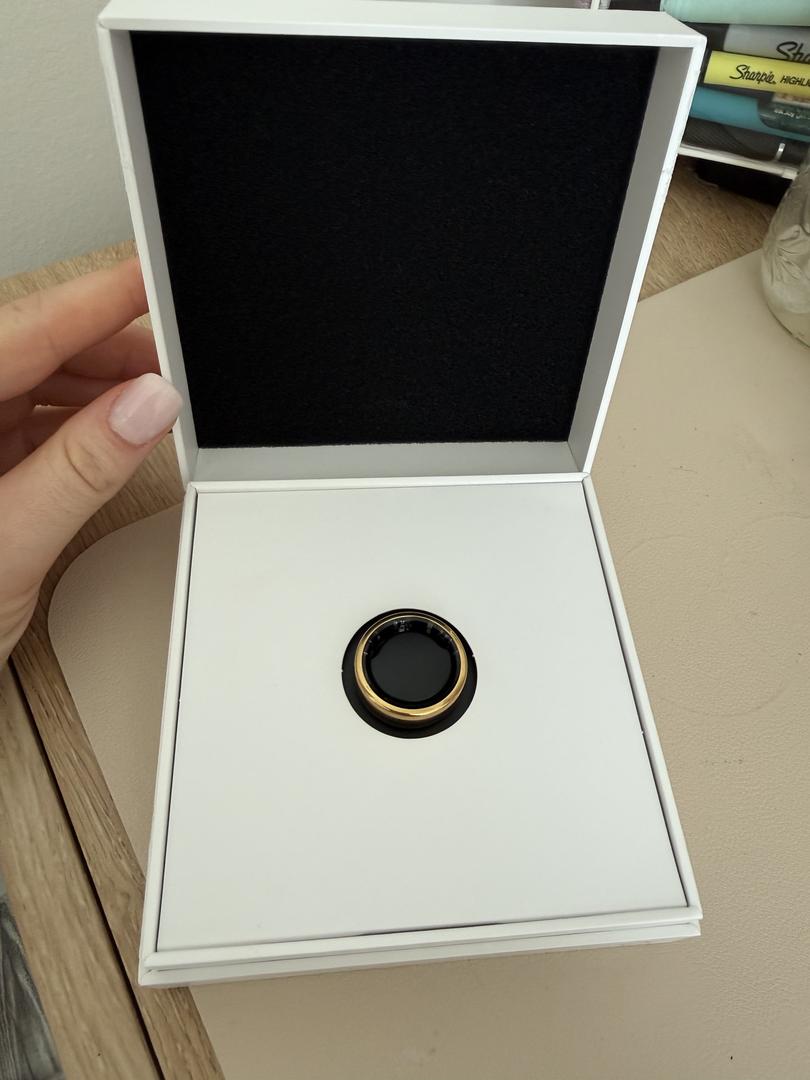 A generation 3 oura ring in horizon gold. Box seal has been broken but ring has never been used. In original packaging with original charger and everything included.