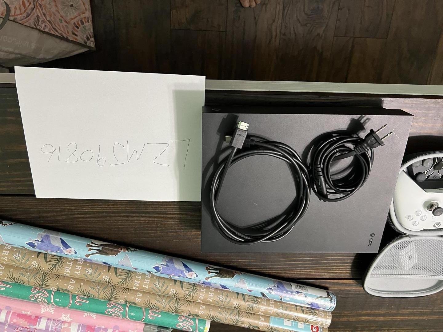 Selling a like new Xbox One X with an Elite controller, 1 hunter green controller, and 2 black controllers. Comes with plug in cable and hdmi cable.