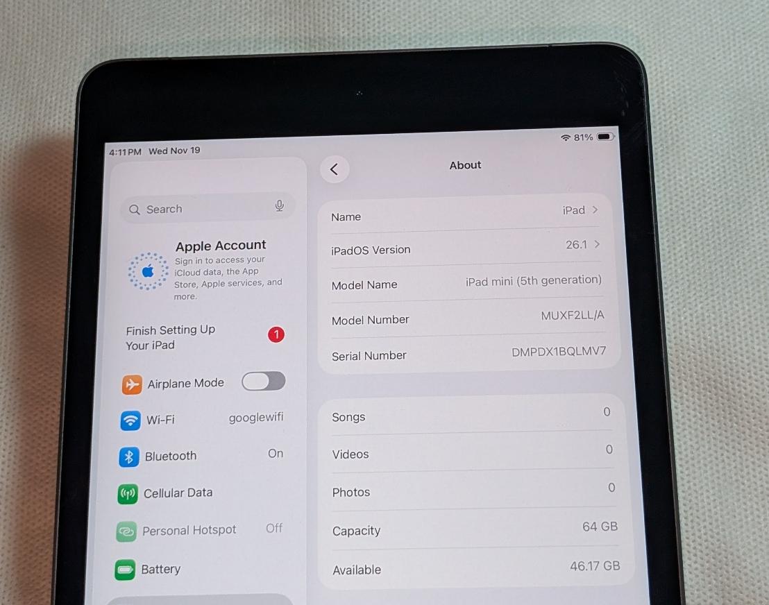 🔥EXCELLENT CONDITION🔥WIFI + 4G LTE UNLOCKED🔥 🔥APPLE iPad MINI 5 64GB iOS26 QUICK SHIP
