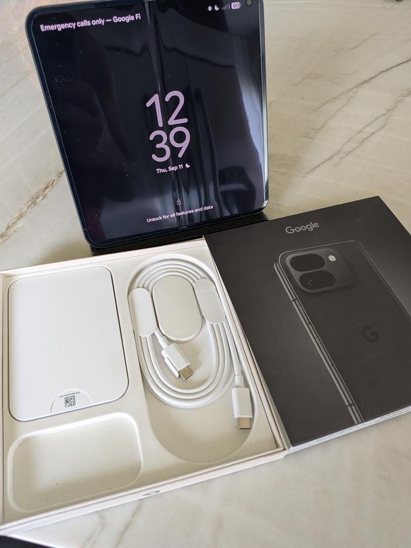 Pixel 9 Pro Fold with wireless charger. Original Box and unused cable