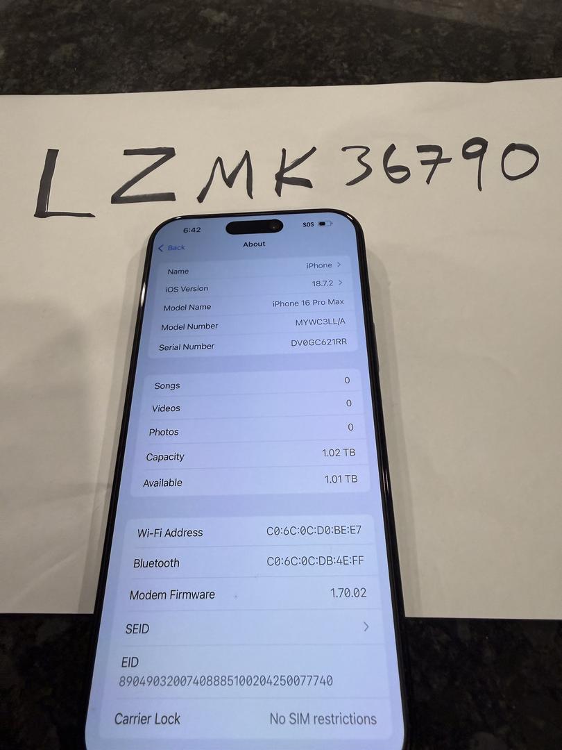 Like New iPhone 16 Pro Max - Black 1TB