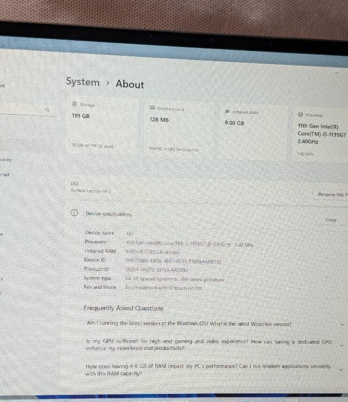 EXCELLENT CONDITION⭐i5 128GB STORAGE⭐ Microsoft Surface LAPTOP GO 2 Windows 11