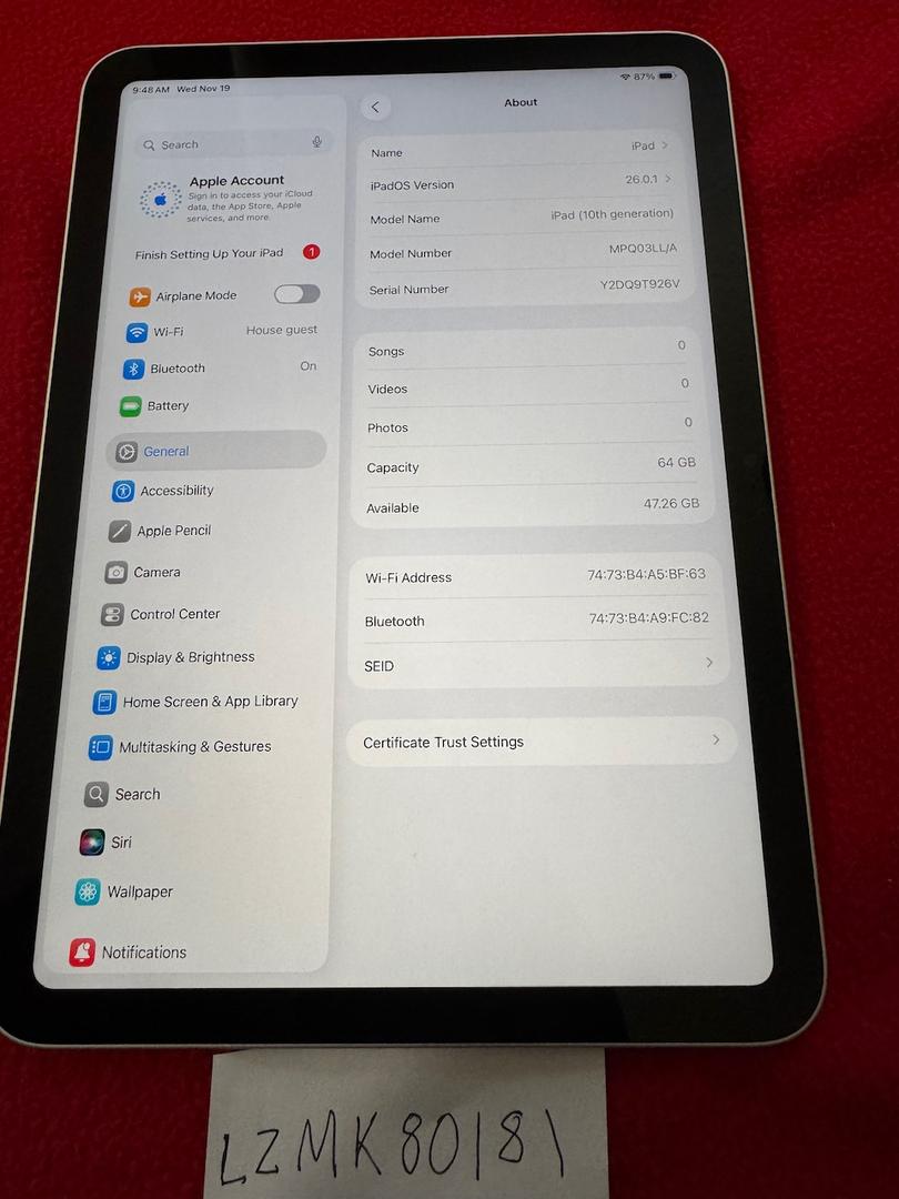 iPad 10th Gen 64gb WiFi