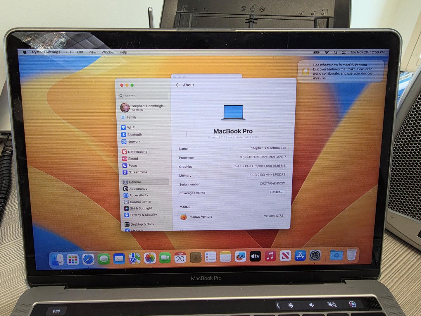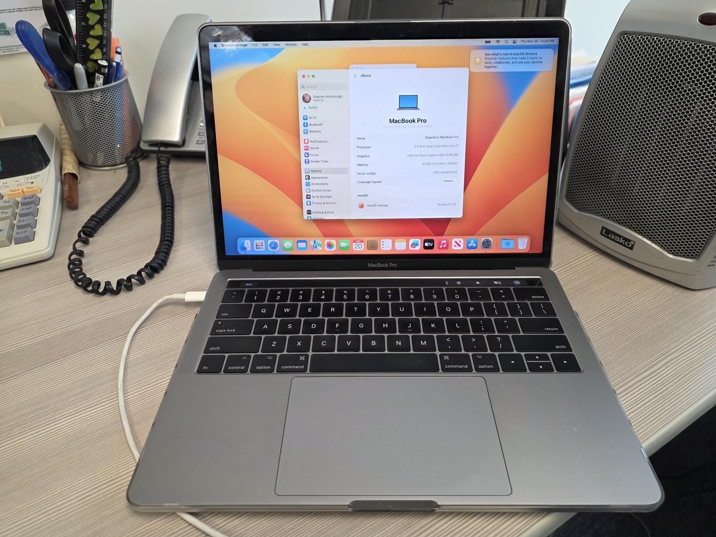 No notable issues. Low usage. Very clean. Includes laptop clear cover.