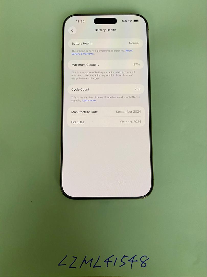 This phone has been gently used for less than ONE year and is in near-mint shape. Always kept in a case with screen protector. Battery health 97% with 263 cycle count. No scratched, dents, or cracks. Fully functional-camera, battery, Faxe ID, buttons, speakers all work perfectly.Includes original box/USB-C cable and a Clear case with MagSave bought from Apple Store.
