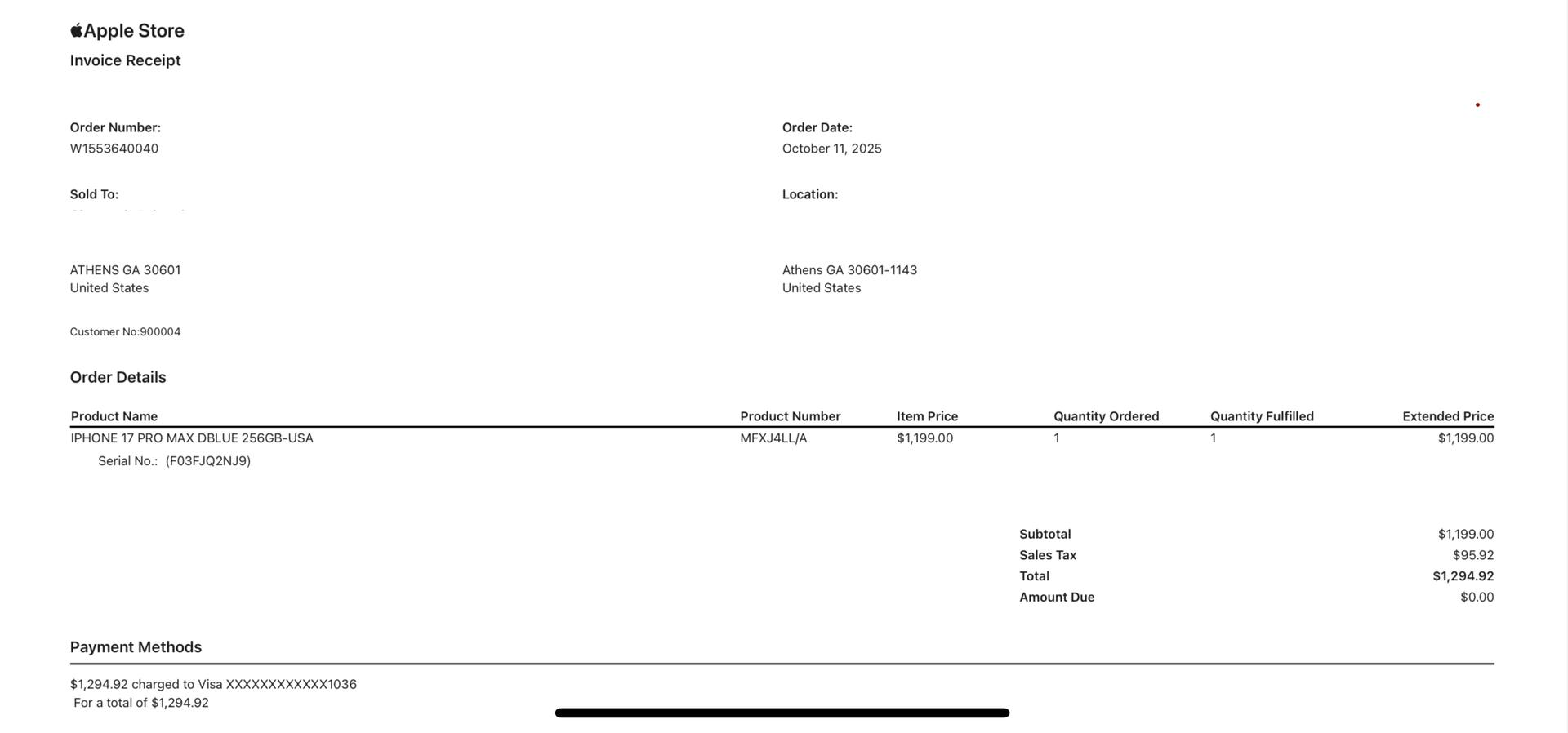 - Seller ships from Athens, GA