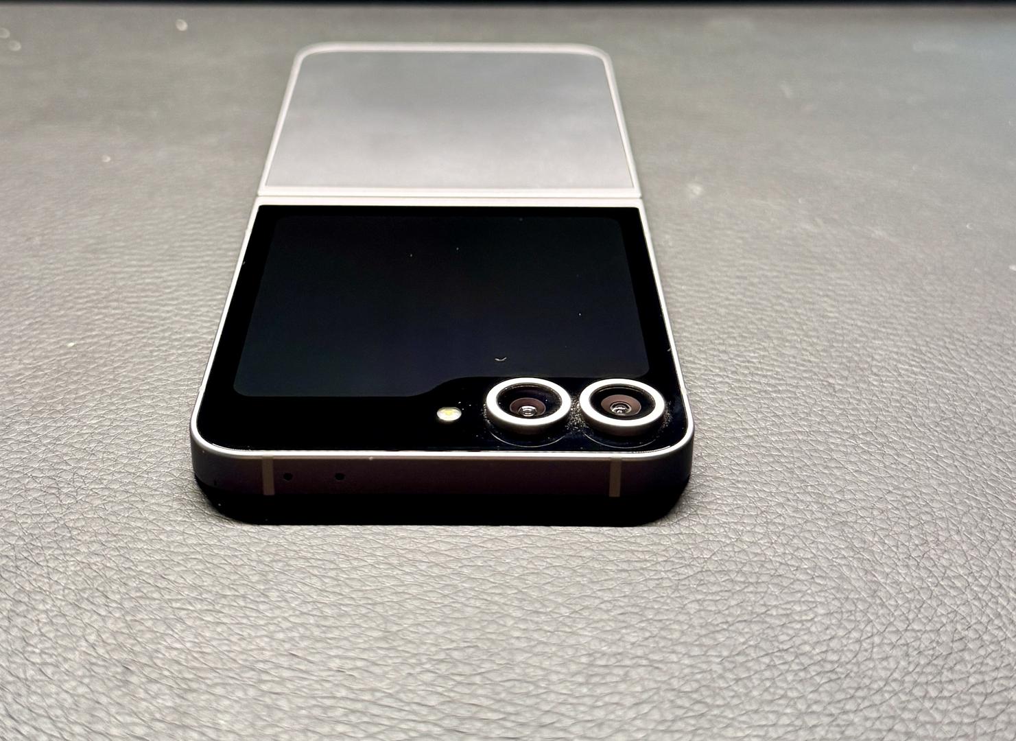 Light, barely noticeable scratch on the outer display.