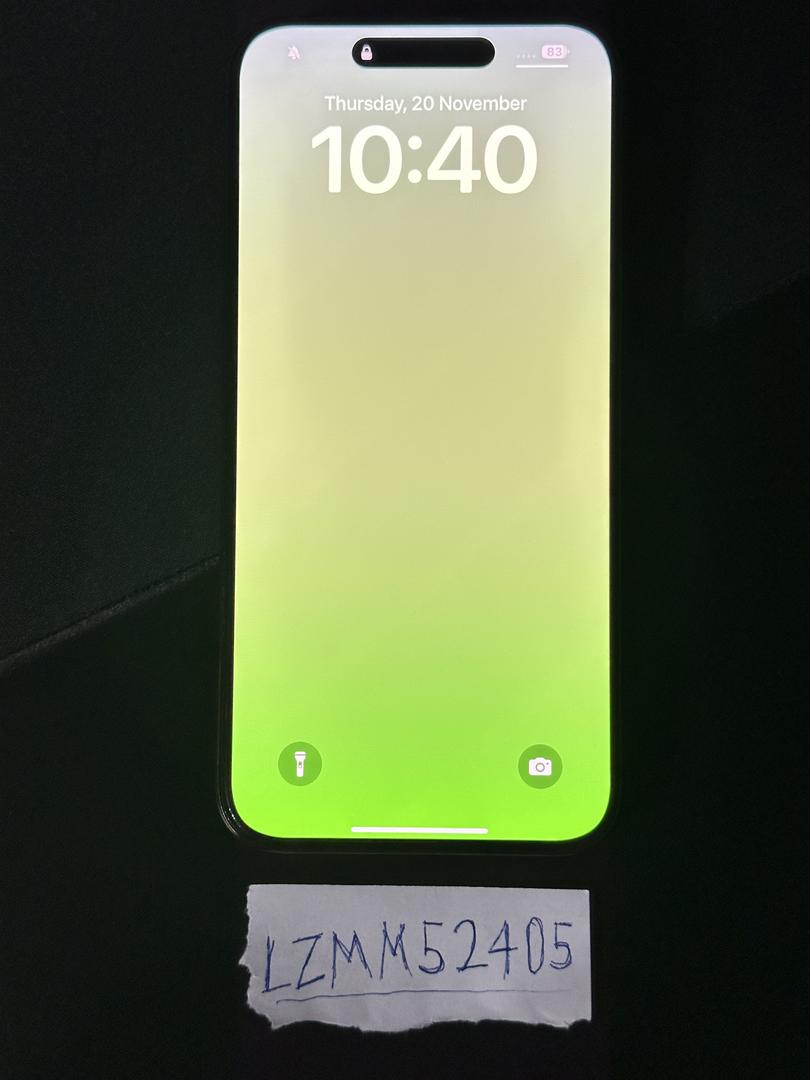 No major scratches or cracks. The phone screen is clearly visible in the photo