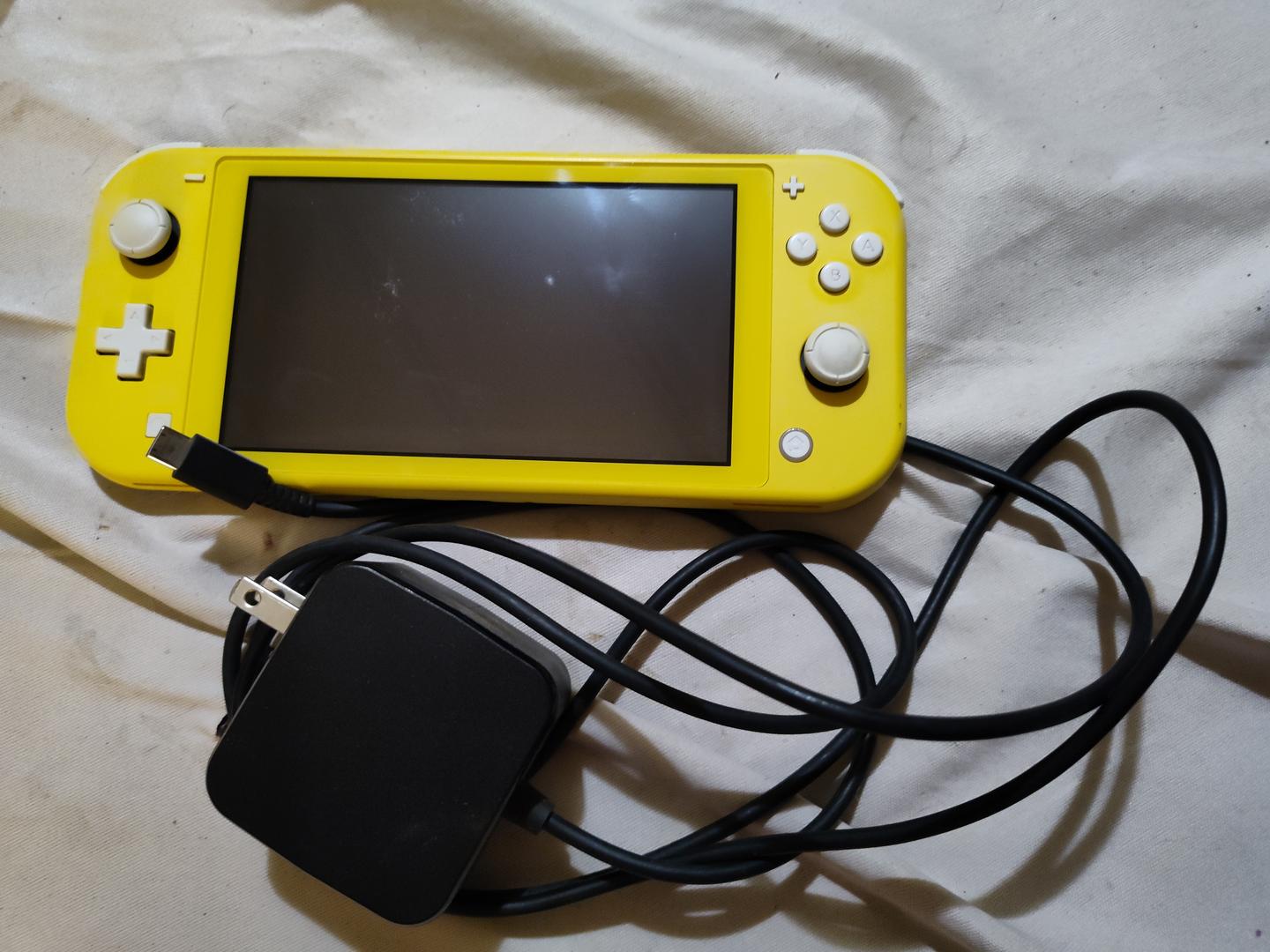 Yellow Nintendo Switch Lite, everything works perfectly, all buttons work fine and no issues with stick drift. The screen has a small imperfection but it does not cause any problems with seeing what's on the screen.