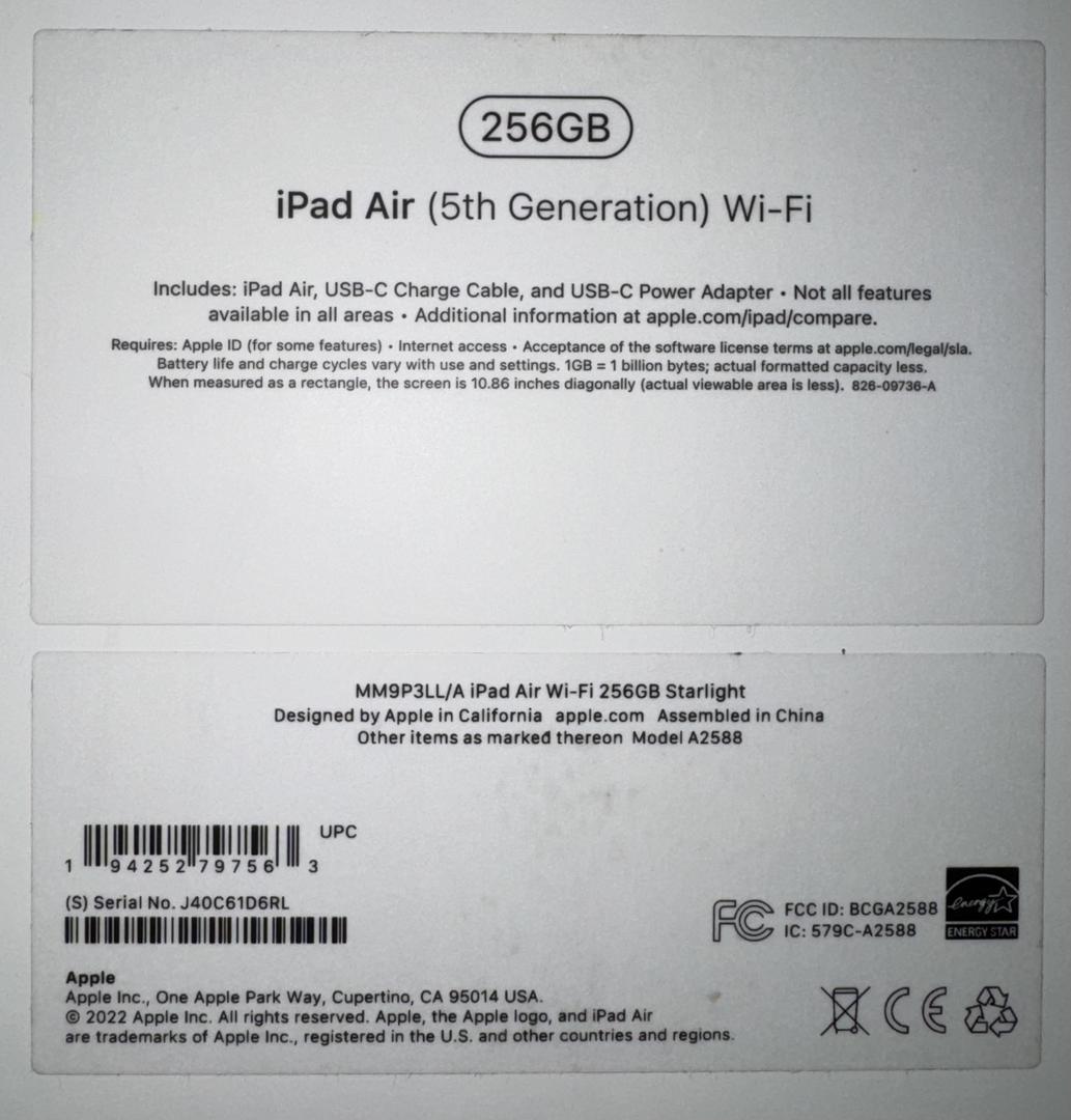 Applie iPad Air Starlight 256 GB + pencil + case