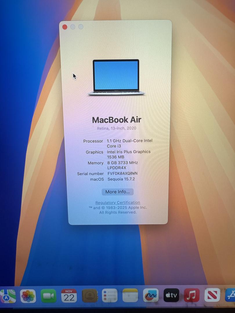 MacBook Air 13 2020/8GB RAM/128GB SSD/Fully Functional/Good Battery