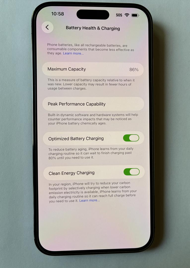 Battery health is 86%.