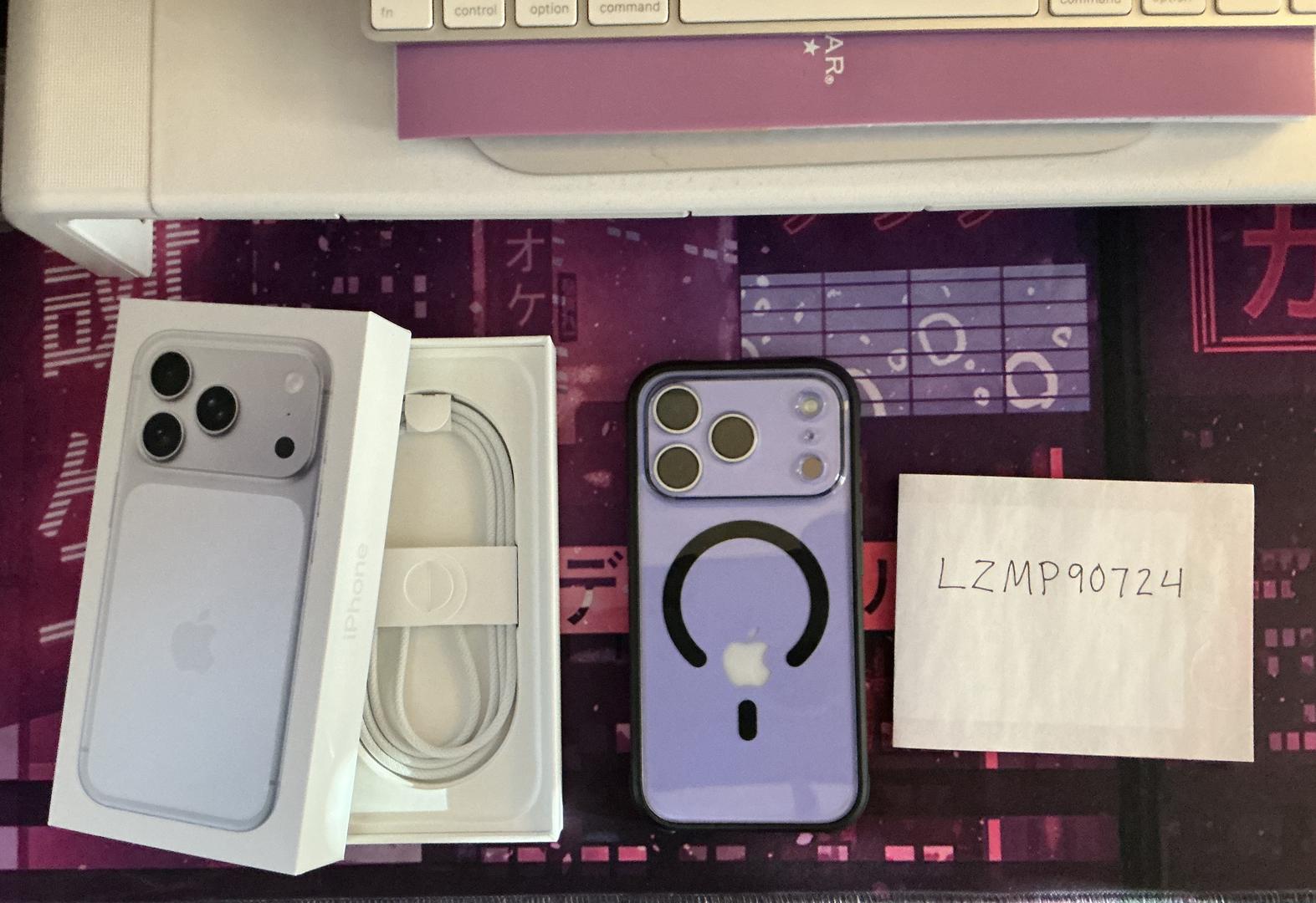 Currently has a DBrand Lavender Purple Skin and Ghost 2.0 case.