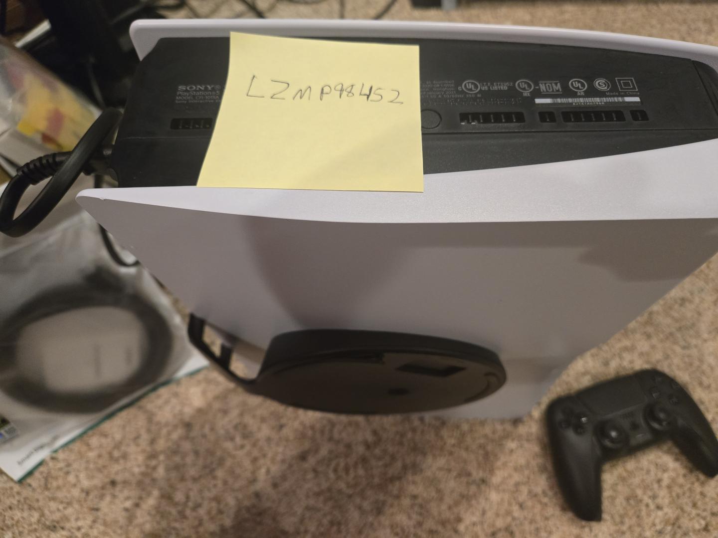 PS5 Disc model in good shape. Couple marks on the bottom where the stand goes (when ps5 is on its side). PS5 works great with 0 issues. Has a 1TB ssd inside it with heat sink on the ssd. Comes with one controller, power cable, the stand and a HDMI 6ft cable.
