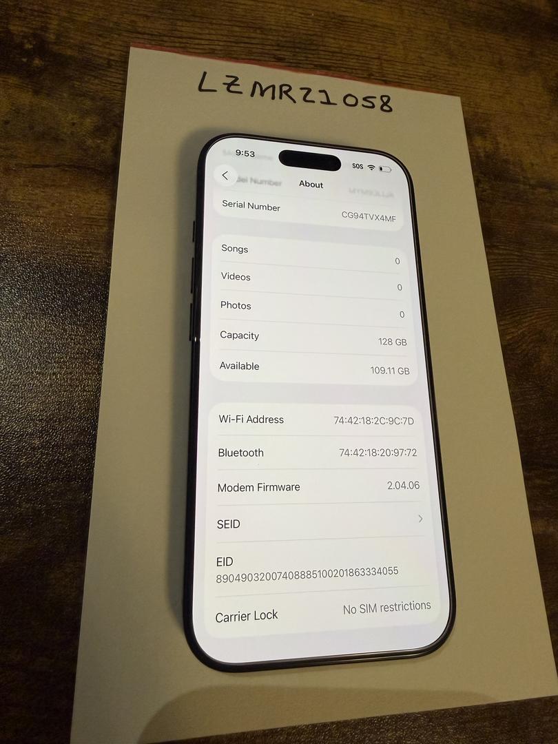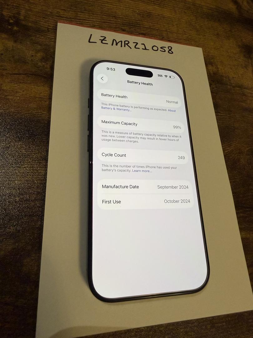 Mint unlocked iPhone 16 pro 128gb device. Screen is mint as it’s had a screen protector since day one and in a case. No blemishes or scratches to the decide. Battery life 99%. Upgraded to a new iPhone and no longer need. Device is unlocked and ready to go!