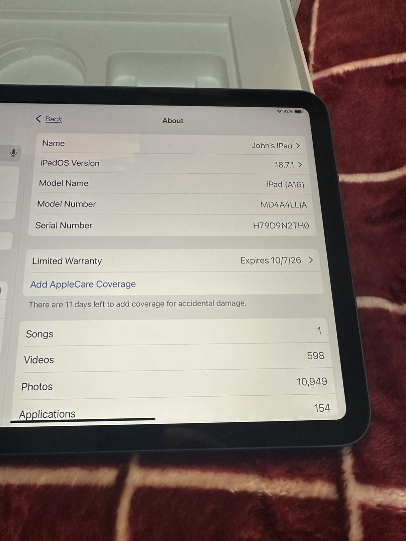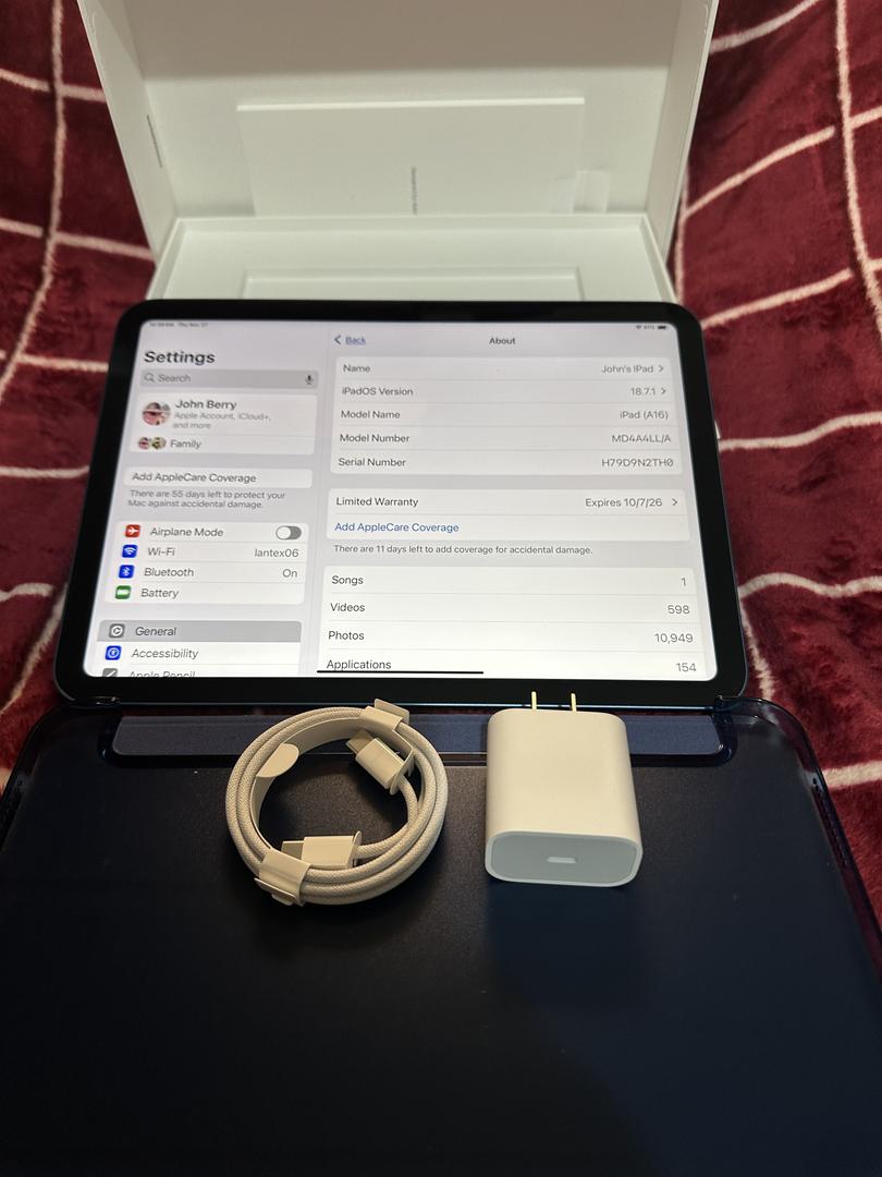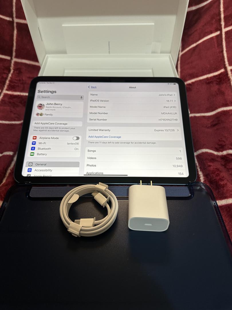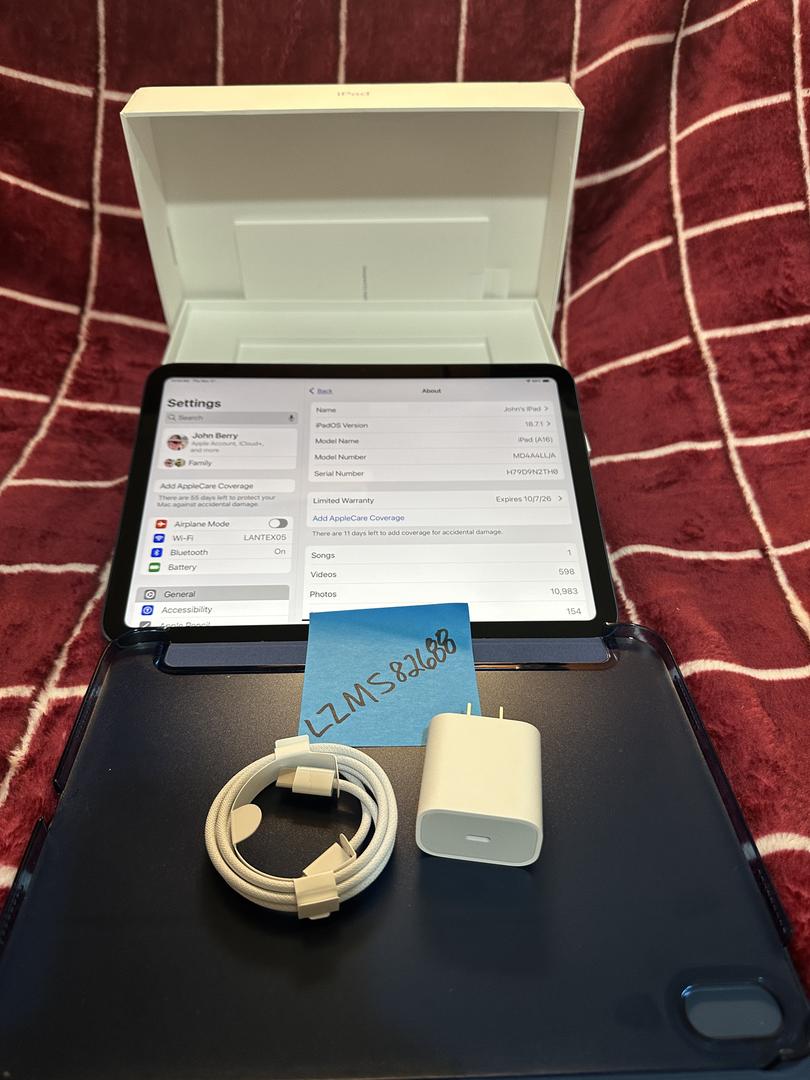 Up for grabs is my gently used IPad 11th gen 11" ipad. It's in pristine condition and included is the OEM unused cable, charger and packaging. Also includes a generic smart cover (3rd party). You won't be disappointed.
