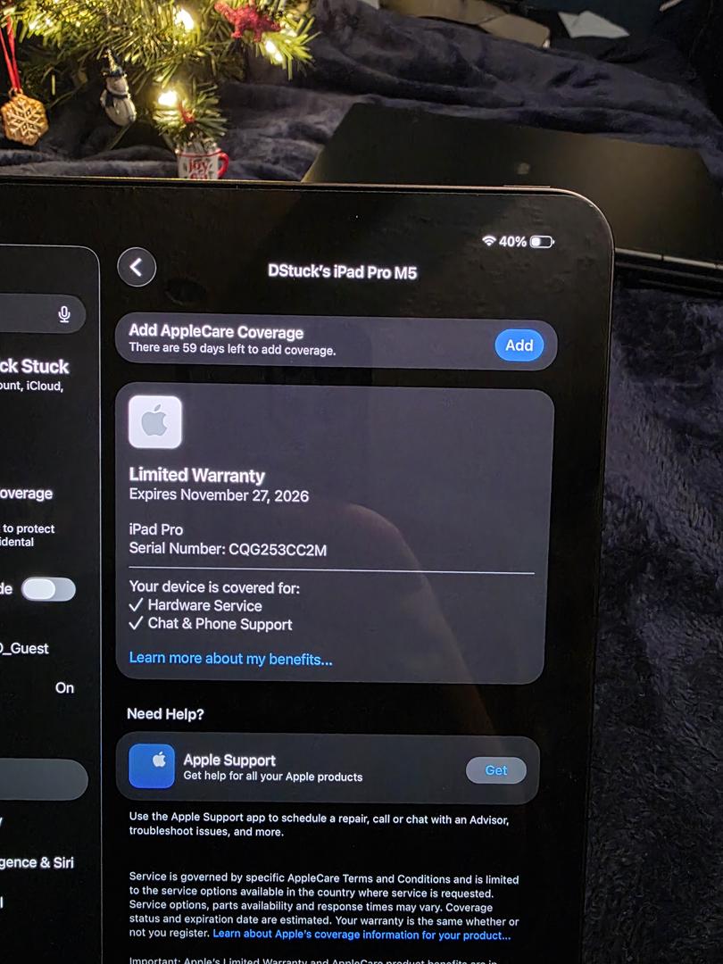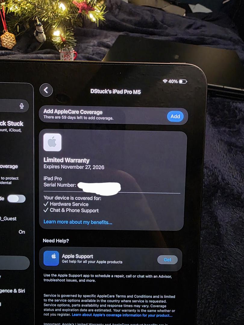 The iPad is in perfect condition. I opened it and had issues using the device for my needs so I am looking to sell it. I don't really want to go through the return process of the device. There is nothing wrong with the iPad it just doesn't work for my needs. I used it for a total of 3 hours and then put it back in the box. I bought it brand new from Best Buy on Nov 28th. The original box, charger and charging cable are all included.