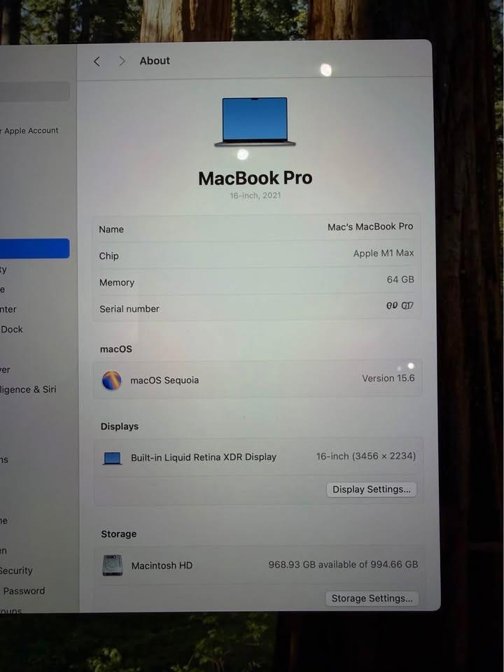MacBook Pro 16” 2021 M1 Max 64GB RAM 1TB