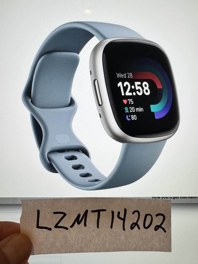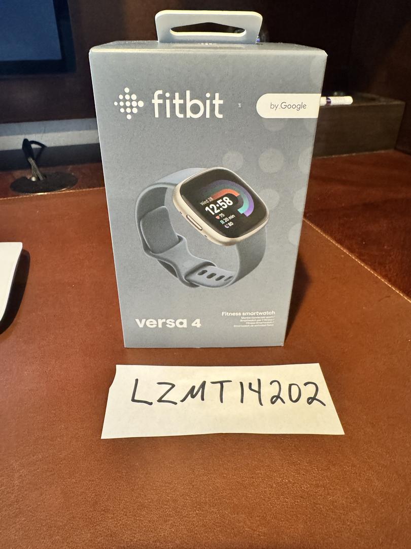 New Sealed Fitbit Versa 4 24mm Platinum Aluminum w/ Blue band