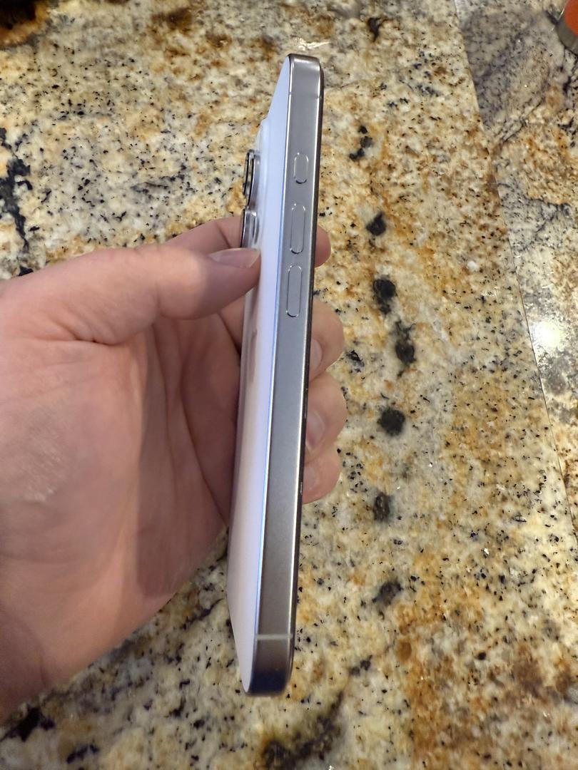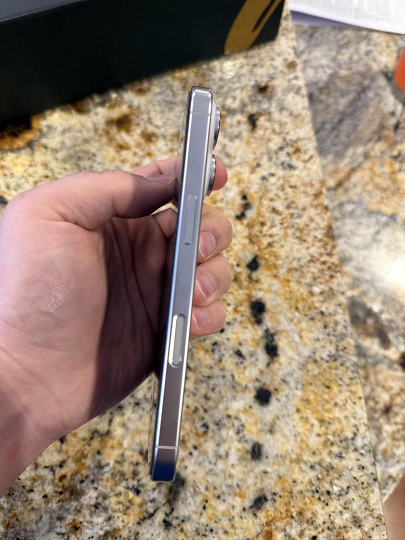 iPhone 16 Pro in white with 256 gb of storage. Comes with original box and expensive blue light filter screen protector. Will also include official clear Apple MagSafe case with green accent. Purchased in April. PRICE FIRM.