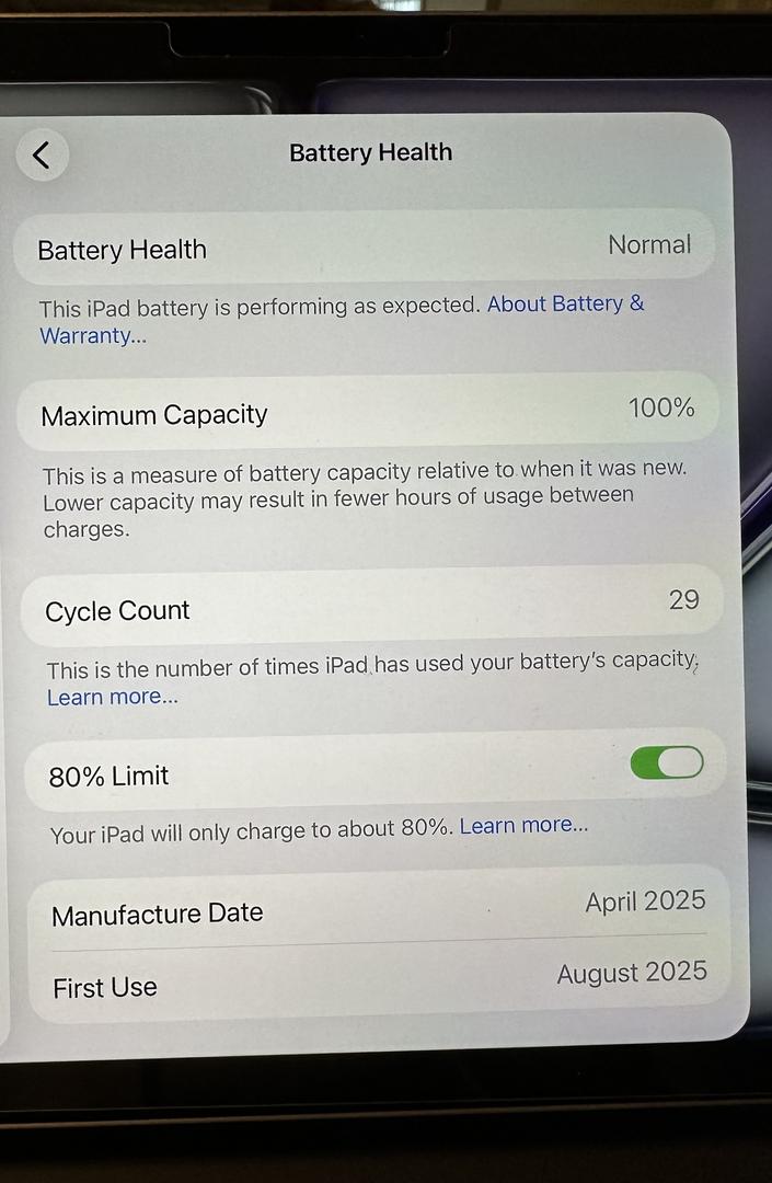 This iPad was activated for the 1st time on August 12, 2025 & barely used as I generally use my iPad Pro. No need to refurbish.