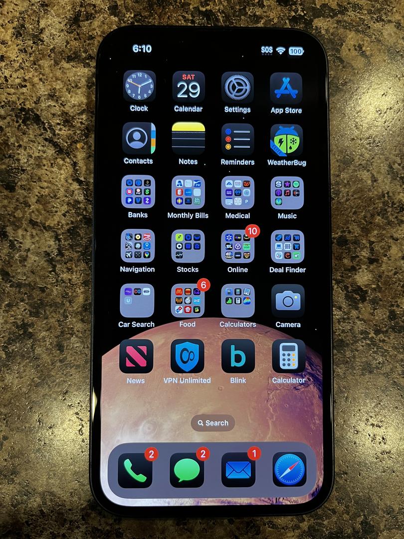 Has always had case and screen protector on. I scoured over phone and couldn’t find any scratches at all on front screen nor the back. The back of phone is still just as shiny as when purchased new. Phone could pass for new especially with the battery health at 100%. There are NO issues whatsoever with this phone and used mainly with Bluetooth ear-peace.