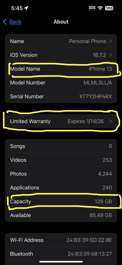 Rarely used Unlocked iPhone 13 - 128gb storage and color is black (midnight). Battery health at 100% and purchased new in January this year (2025). Limited factory warranty is still active until 1/14/2026. Like new and selling below average price for condition and is still under warranty. Also will come with original box and all accessories. Would make a perfect gift!