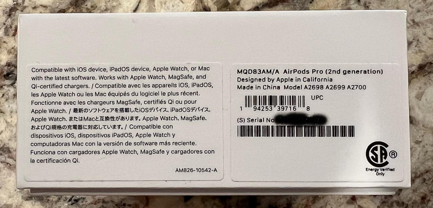 AirPods Pro Gen 2 with all accessories, original box and unused power cable