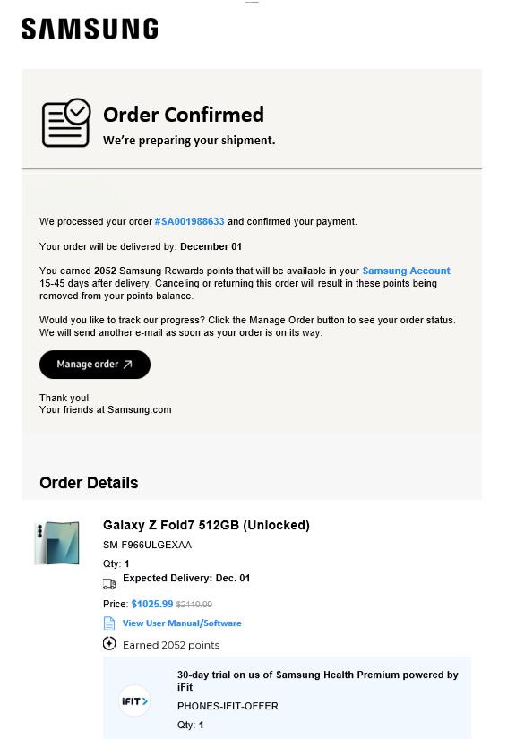 Samsung Galaxy Z Fold7 – 512GB – Factory Unlocked – Great Condition + 2 Free Cases & Buds3 Pro