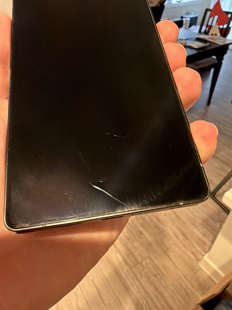 - slight scratches visible on screen under light