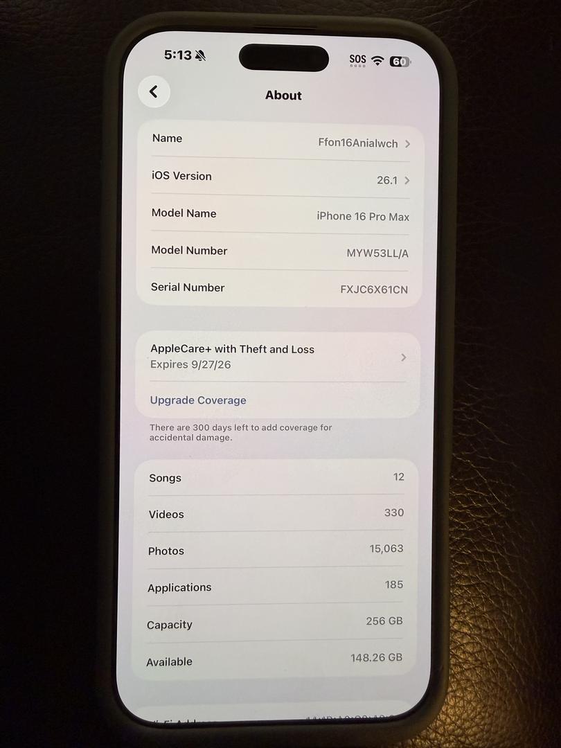 AppleCare+ Theft & Loss: Active through 9/27/26. Will be removed before shipping unless buyer adds +$119 to keep it; if added, I’ll transfer it after purchase. Clean ESN. Ships carefully.