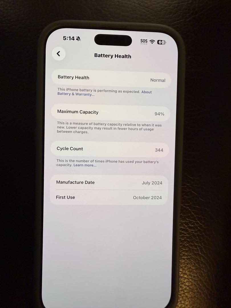Condition: One owner; always used with an Apple case and screen protector. Near-mint overall. One faint micro-scratch on the back (only visible in the angled photo with my hand). Battery health 94%. Smoke-free home.
