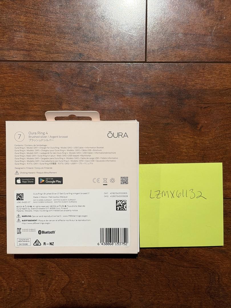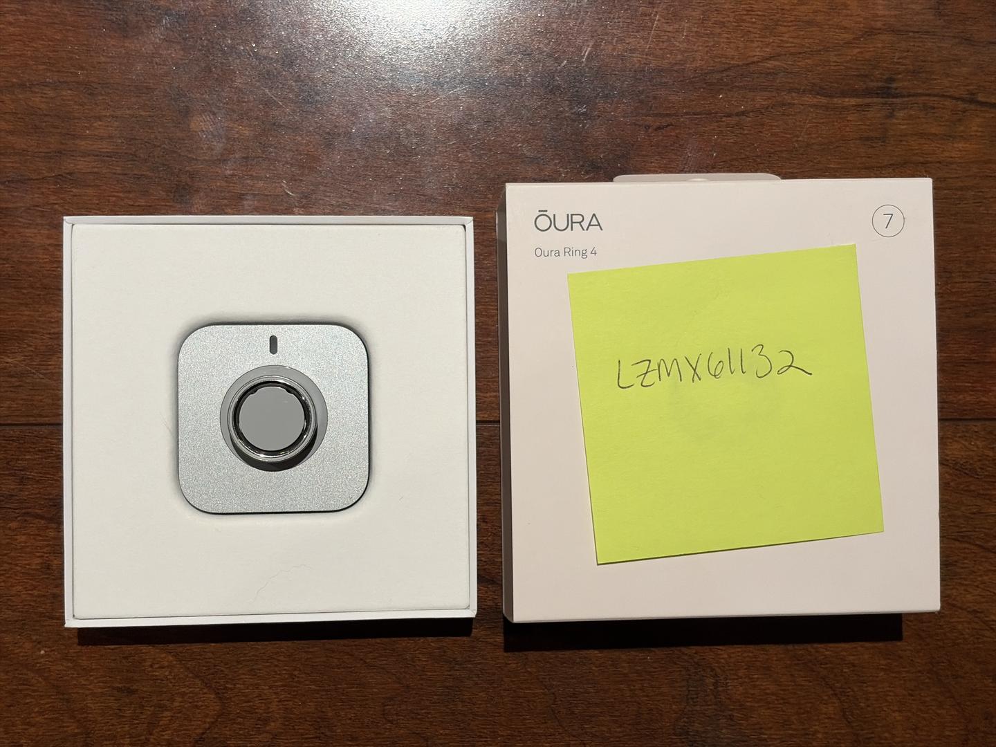 Oura ring, size 7, has some scratches but is functionally perfect. Comes with the box and charger.