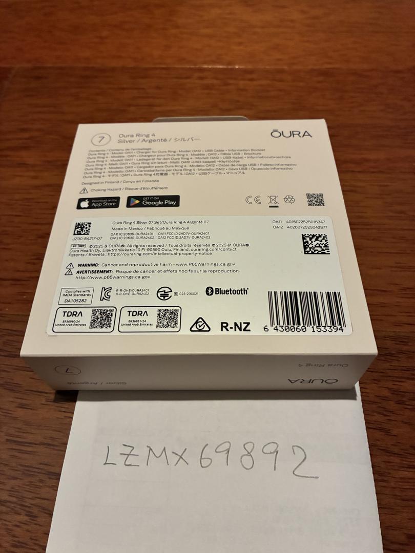 Oura Ring, size 7, brushed silver - box and charger included