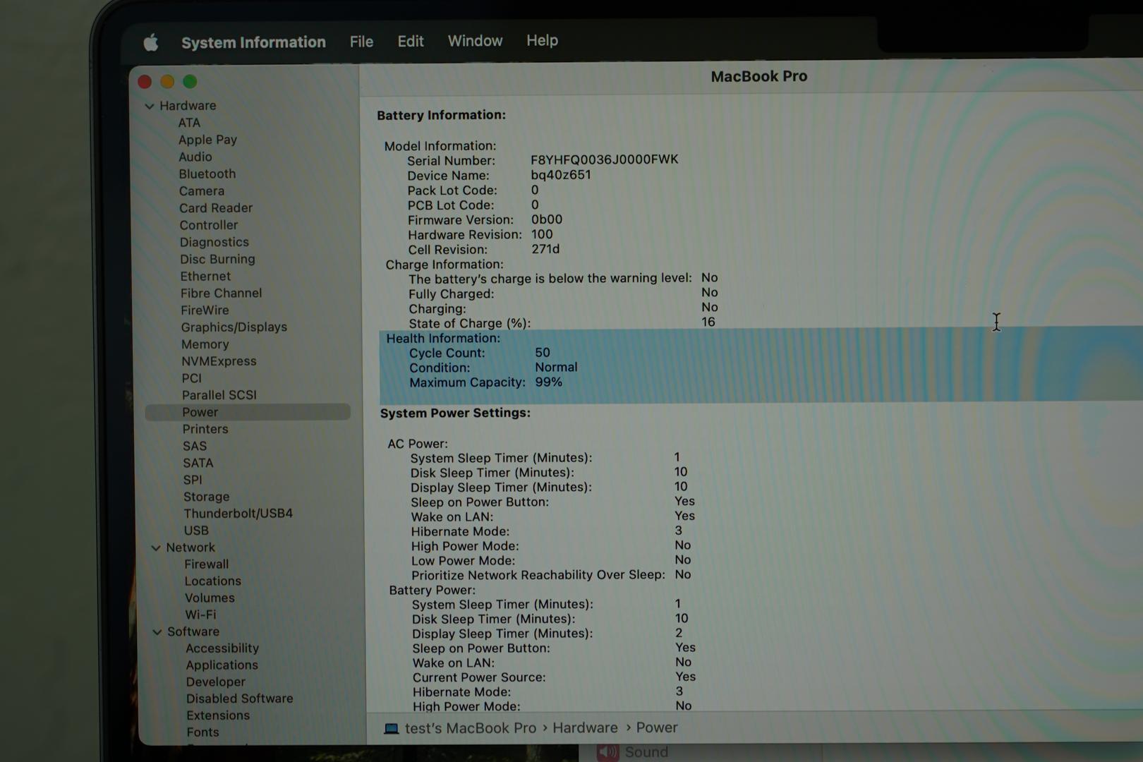 Battery Health: Excellent — 99% capacity with just 50 cycles.