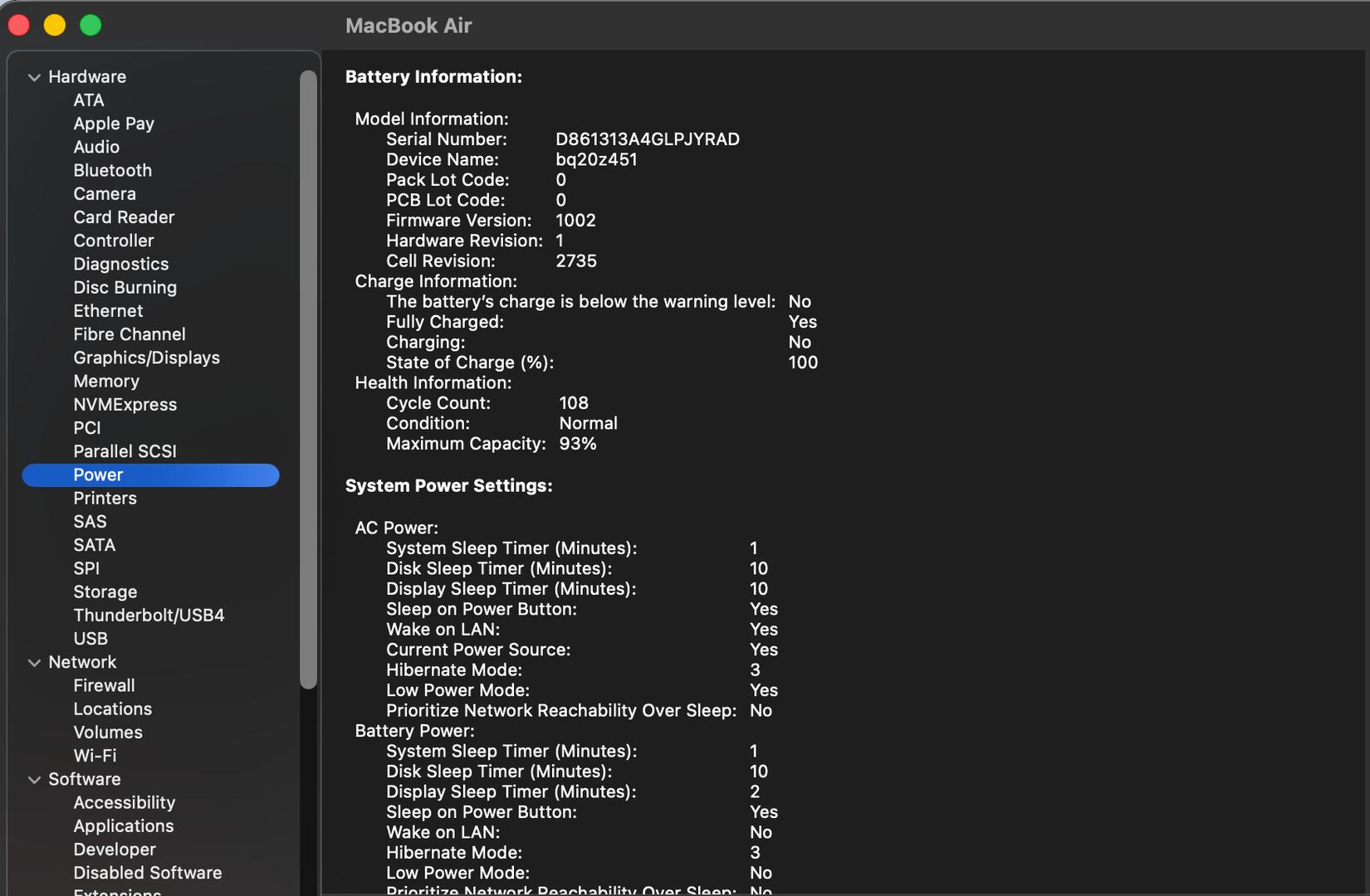 Power : Cycle 108 ; Capacity Maxam : 93%