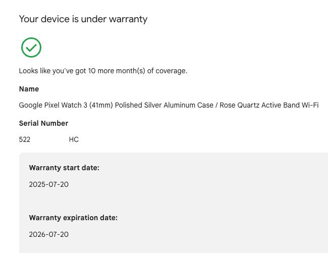 *** Google Warranty through July 20th, 2026 ***