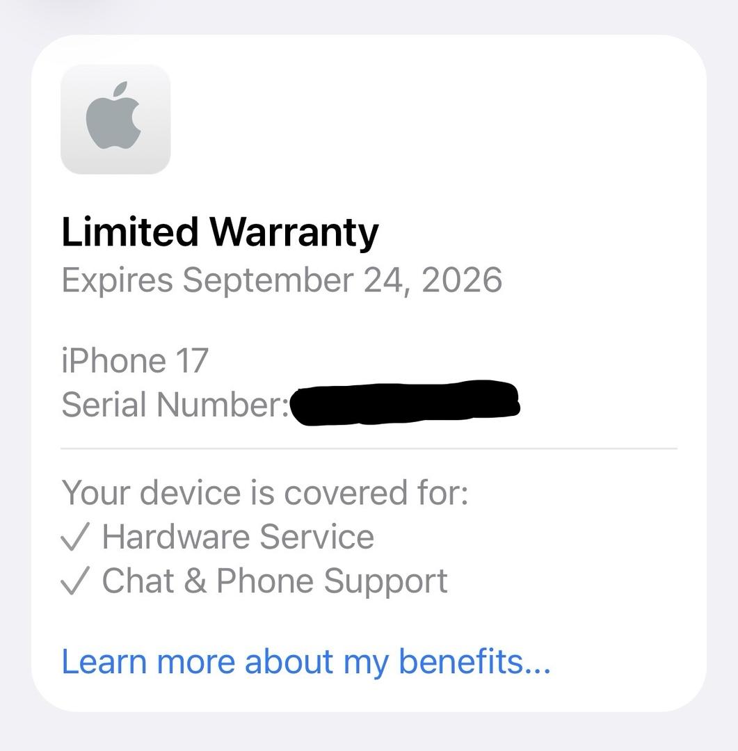 📆 Warranty: Apple warranty to September 2026